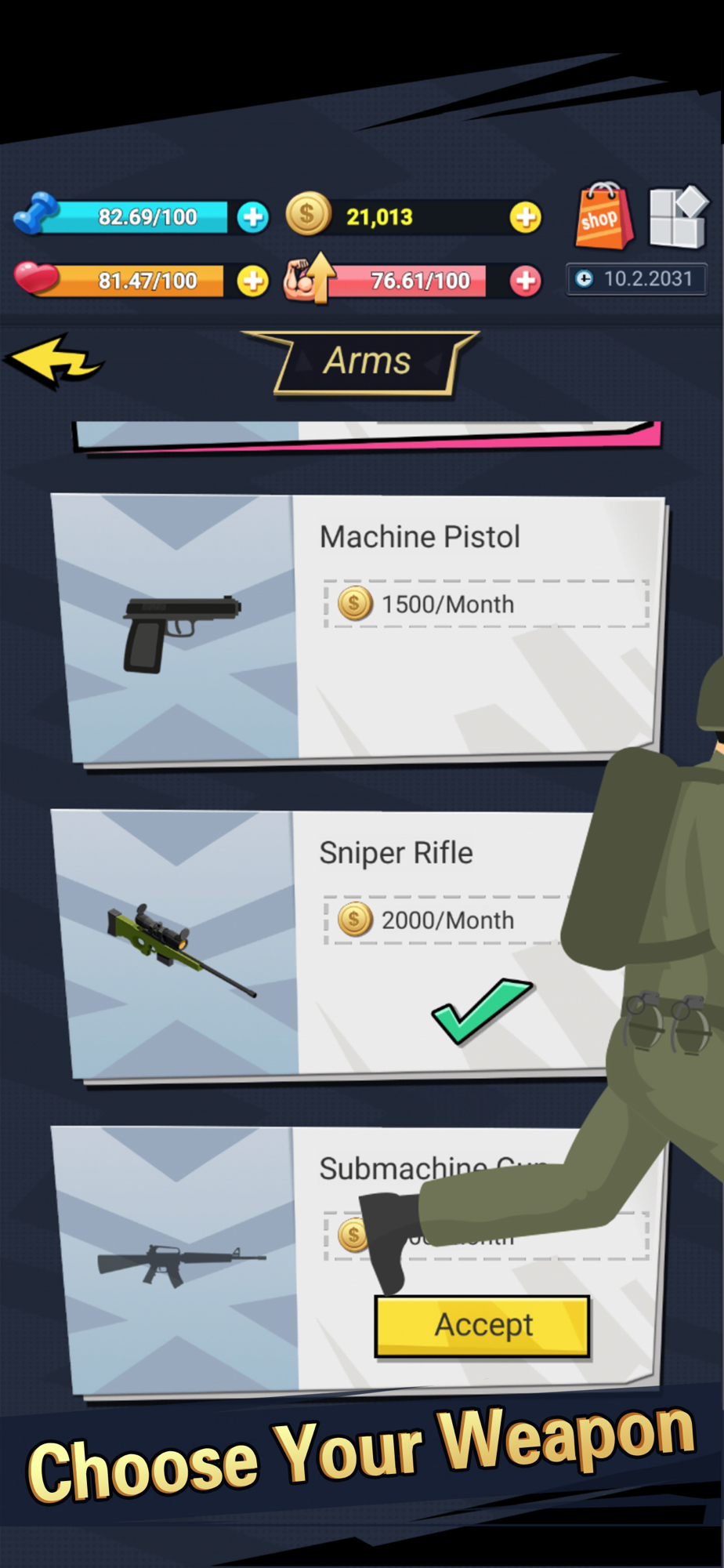 It all started from the moment of you joining the army. Experience your way of promotion from an ordinary recruit to eventually becoming a five-star general.