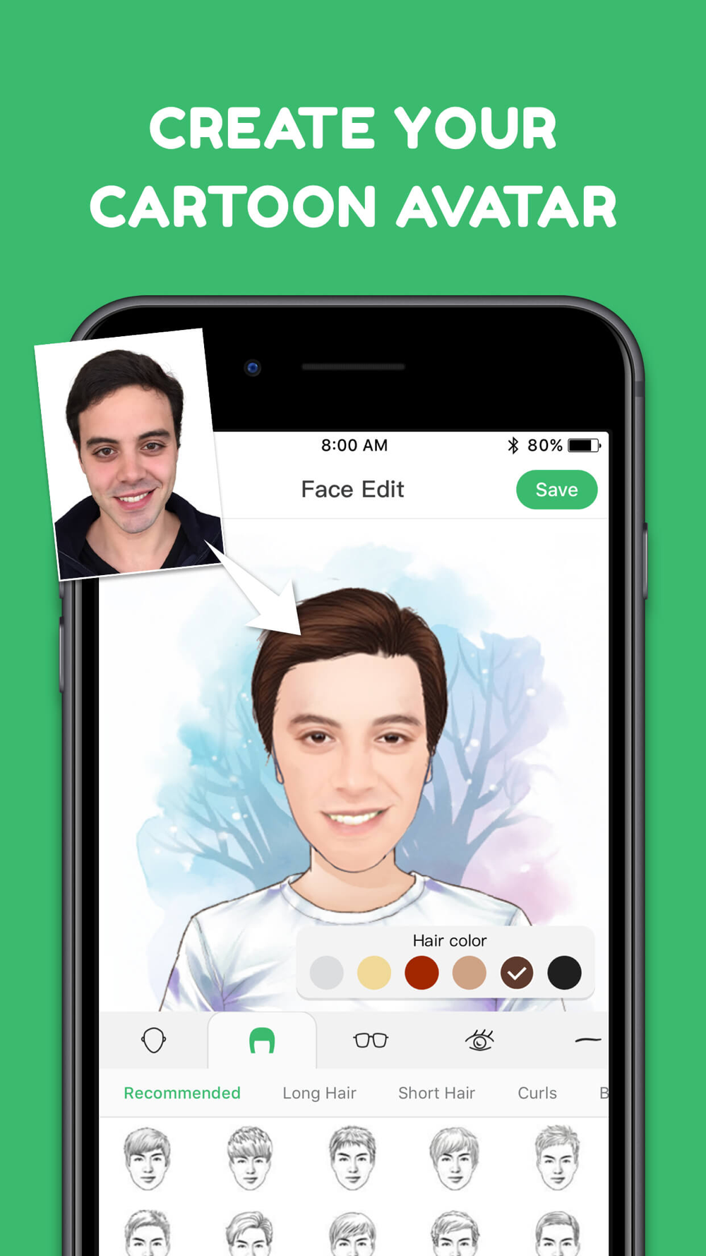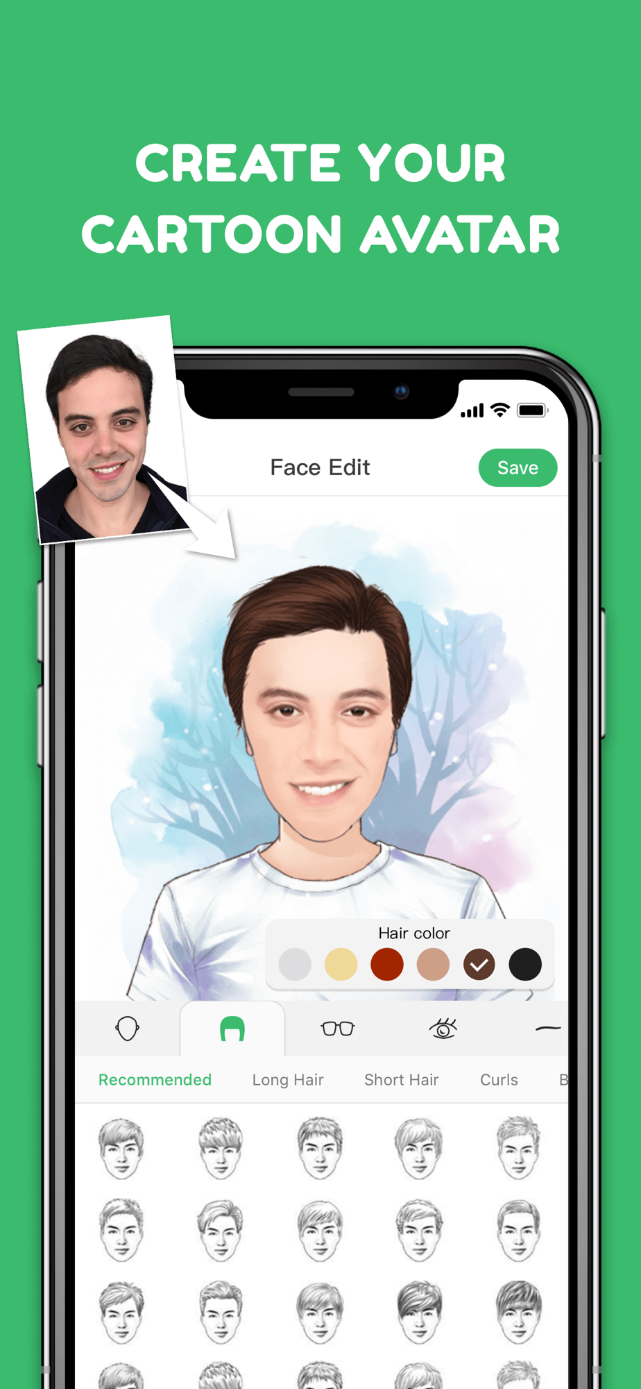 Just take a selfie and instantly create your own personalized avatar. You can then pick one template from thousands available, and customize your GIF sticker entirely.