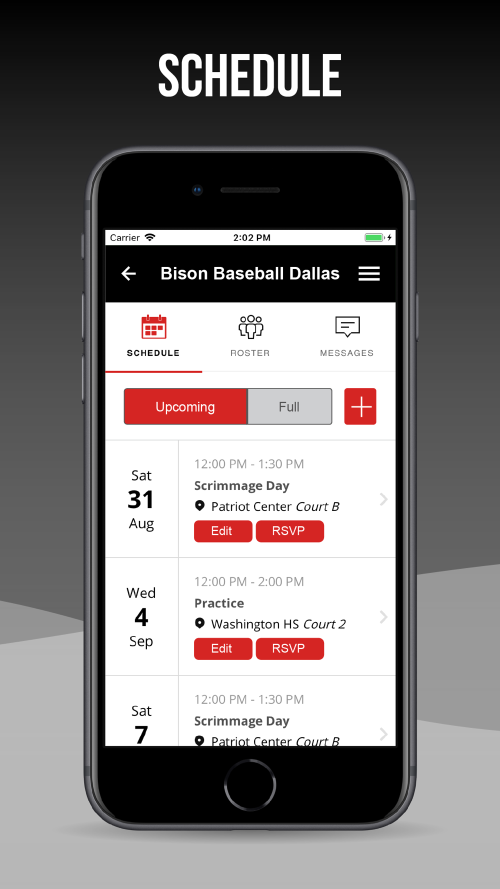 The Bison Baseball Dallas app provides parents and coaches all of the tools they need to participate in their team. Perform the following team activities right inside our new app.