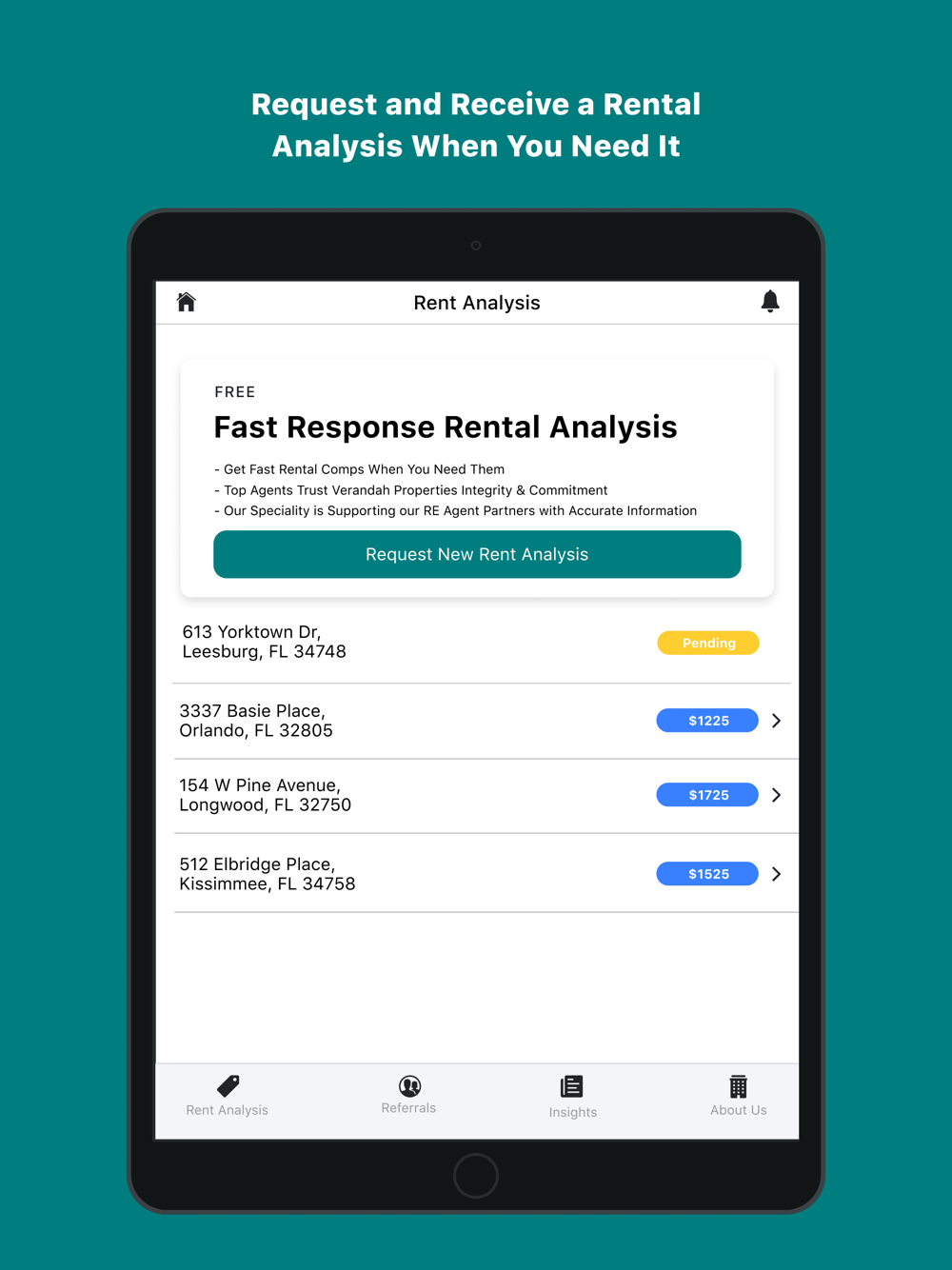 Grow your business, Stay informed and Work with Investors like a Pro! Get the information you need when you need it from a live VP PM expert...Not a computer program. Now you can access fast and accurate rent comps, investment analysis and stay current on the most up-to-date laws affecting tenant occupied properties. Get the information you need when you need it. The Verandah PM for Realtors app is a “must have” app if you list or sell investment property, or want to, in the greater Central Florida area. For more than 25 years top producing agents have partnered with Verandah Properties PM Professionals to take their business to the next level and you can too.The VP PM team even pays YOU when your clients choose to work with us. As a number one rated Property Management company in the Central Florida region, our integrity and professionalism are well known. Get the Verandah PM for Realtors app and partner with us.