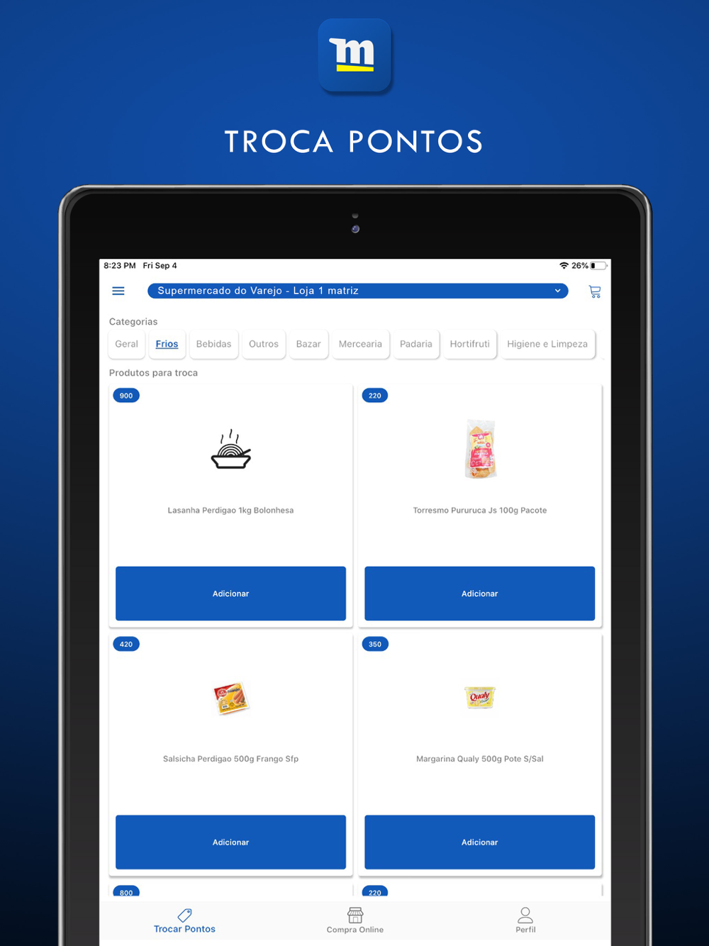 Trocas de pontos por brindes;