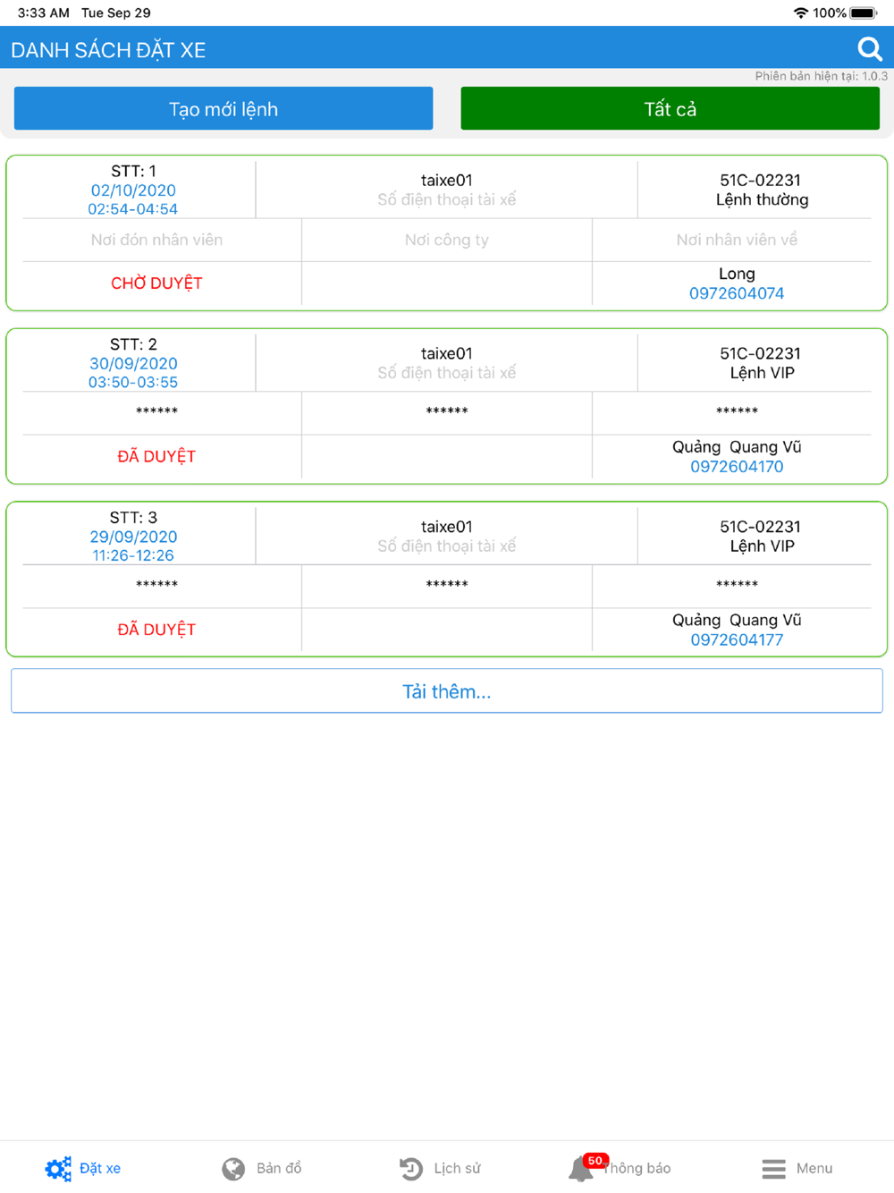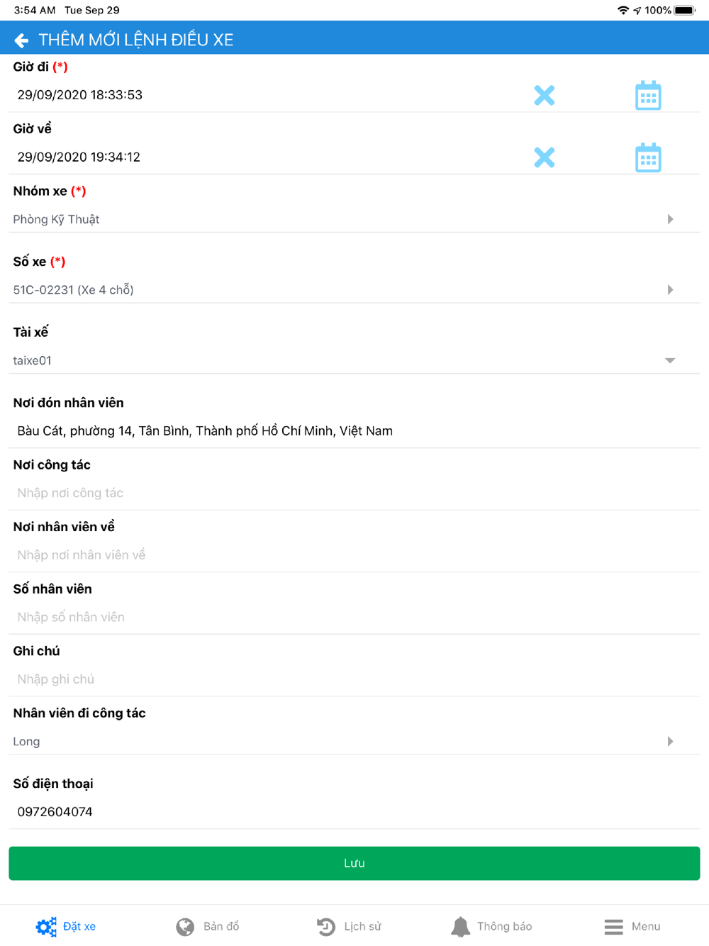 Đặt Xe Nội Bộ 1.1.1 Update