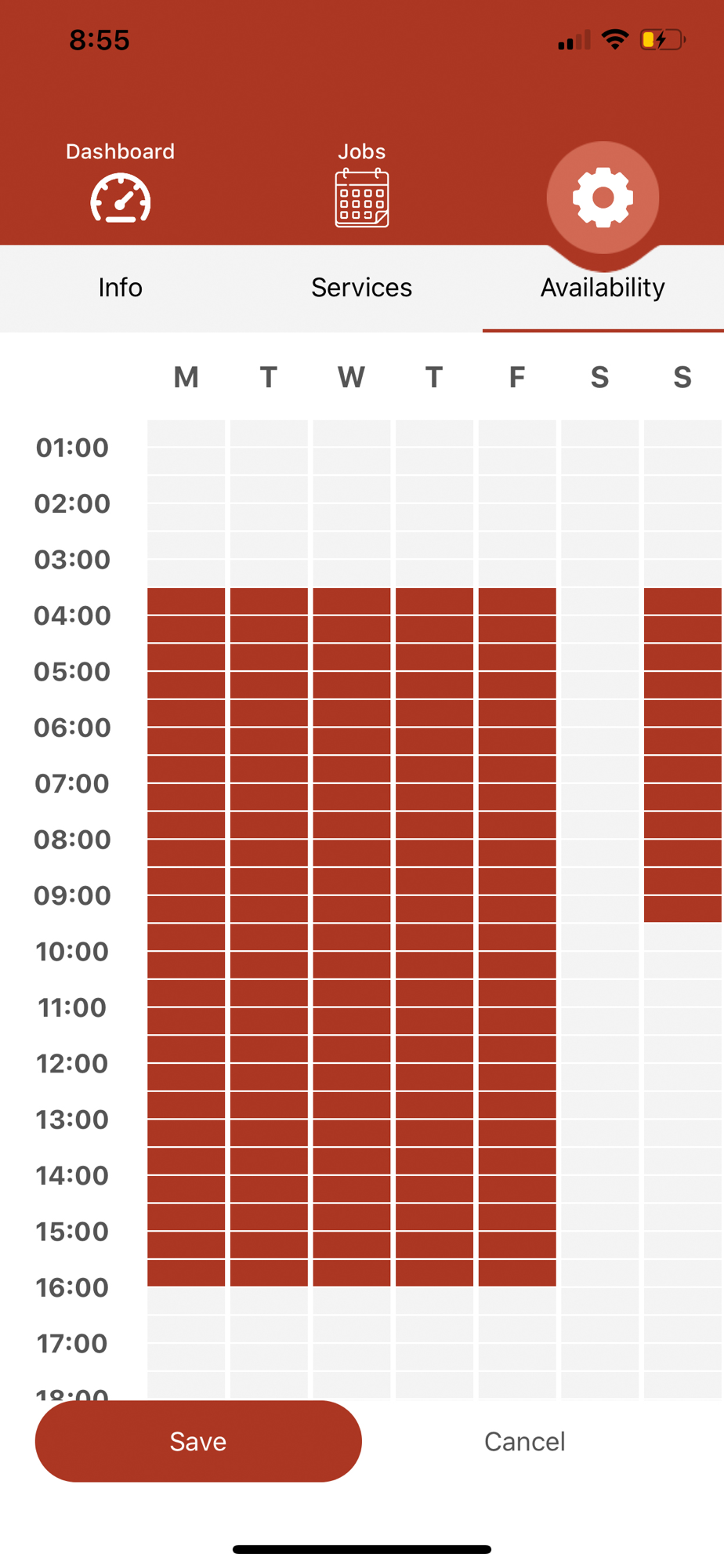Further more the app has the ability for a crew to select their availability in hours, circle the area they are willing to service and select the services they offer. This option will only be available if the admin choses to provide.