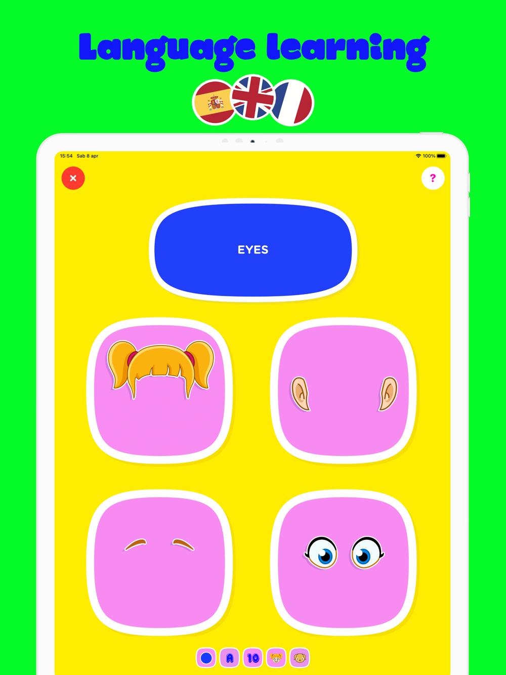 - French: Learn colors, the alphabet, numbers, animals and parts of the face