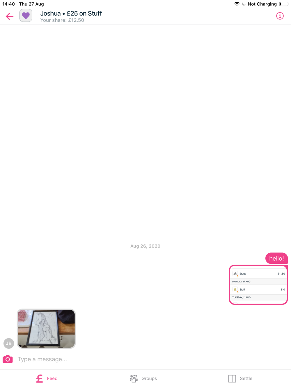 * Keep financial discussion away from your group chats with self-contained chats for every cost.