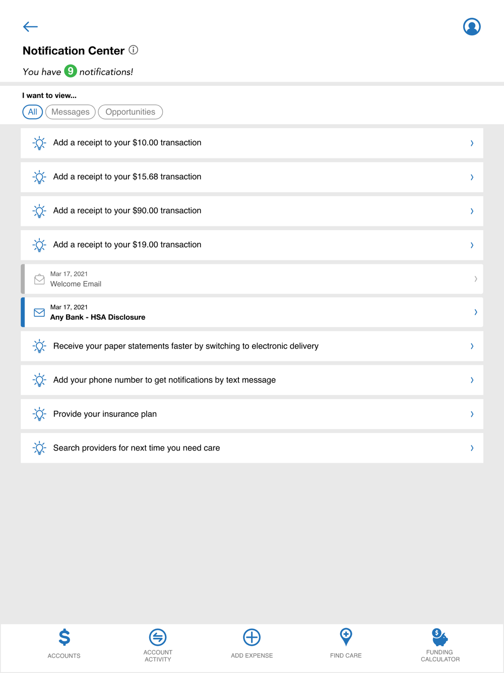 • Upload and save receipts from doctor visits, prescriptions, etc.