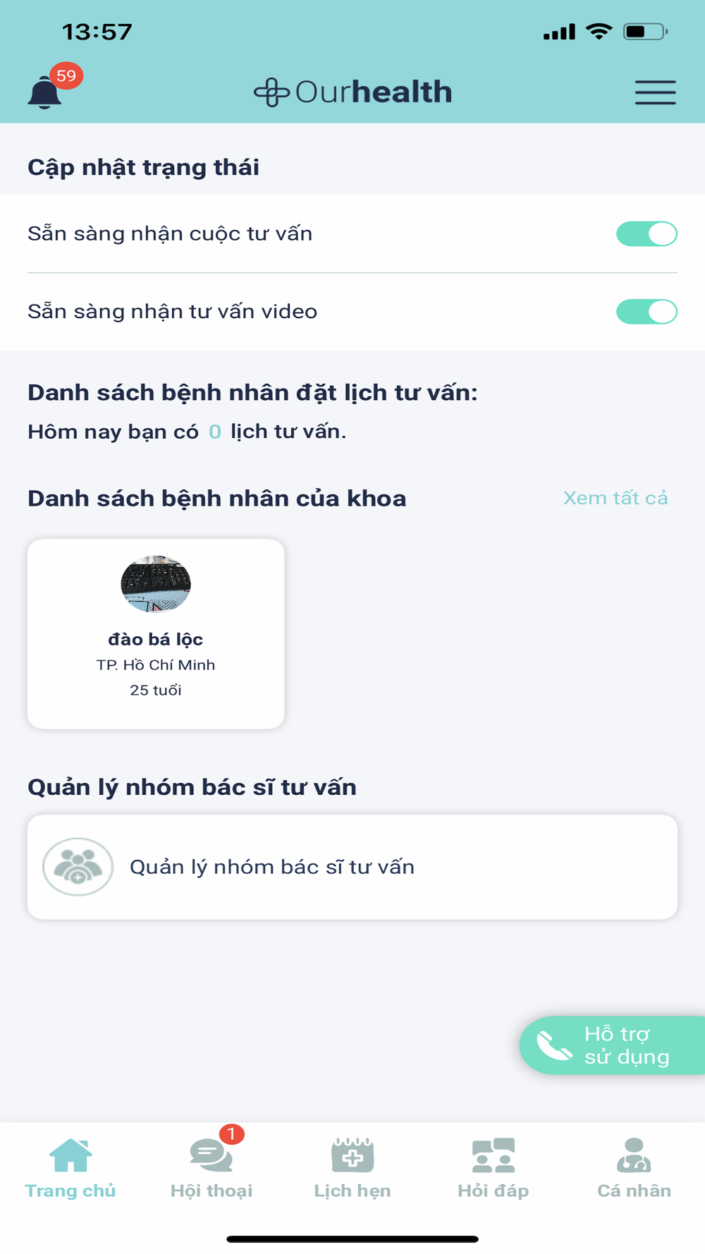 - Tự tạo tư vấn theo nhóm bác sĩ, tạo ca trực Hotline theo từng khoa của bệnh viện
