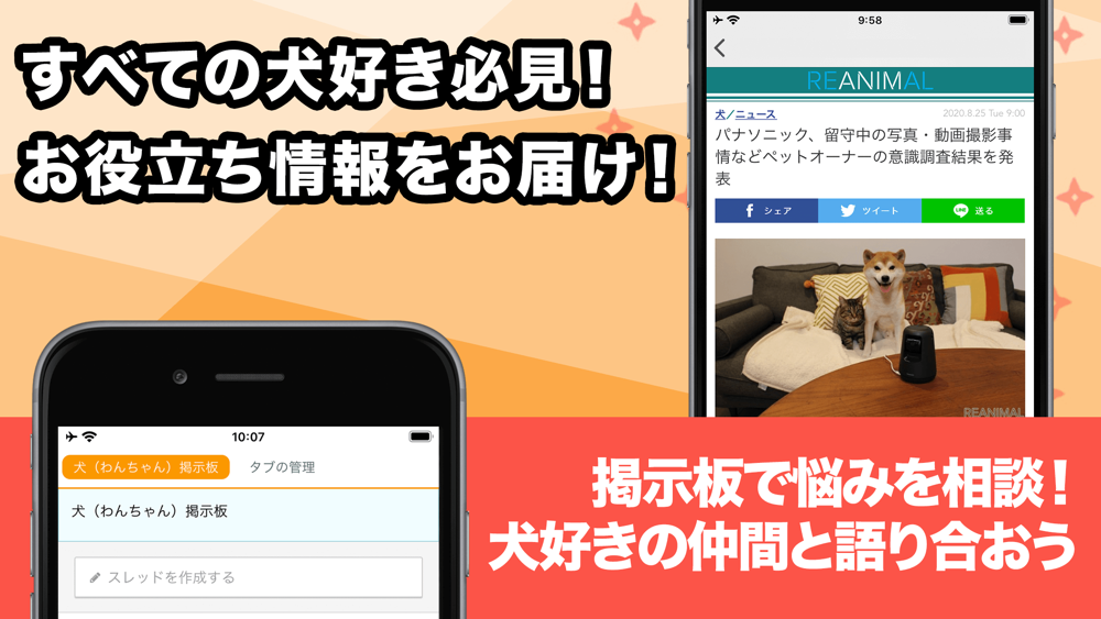 そんな悩みを解決してくれるニュースが満載!掲示板で同じわんちゃんを飼っている飼い主さんに相談もできるので、リアルな意見を聞けて安心。