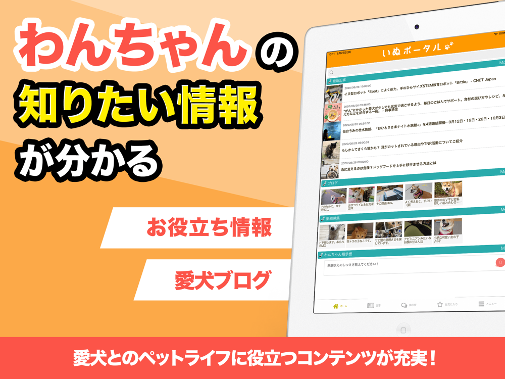 ペットに関する最新ニュース・みんなのかわいい愛犬が見られるブログ情報・飼い方の悩みを相談できる掲示板などタイプ別にメニューが分けられているので、欲しい情報が一目で分かる!