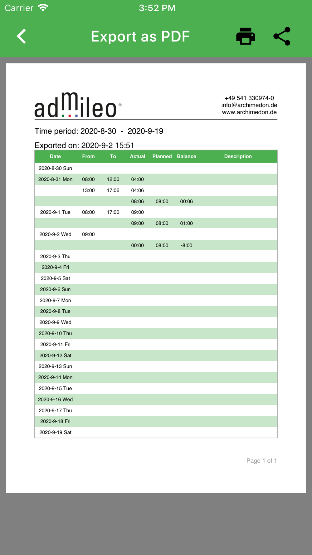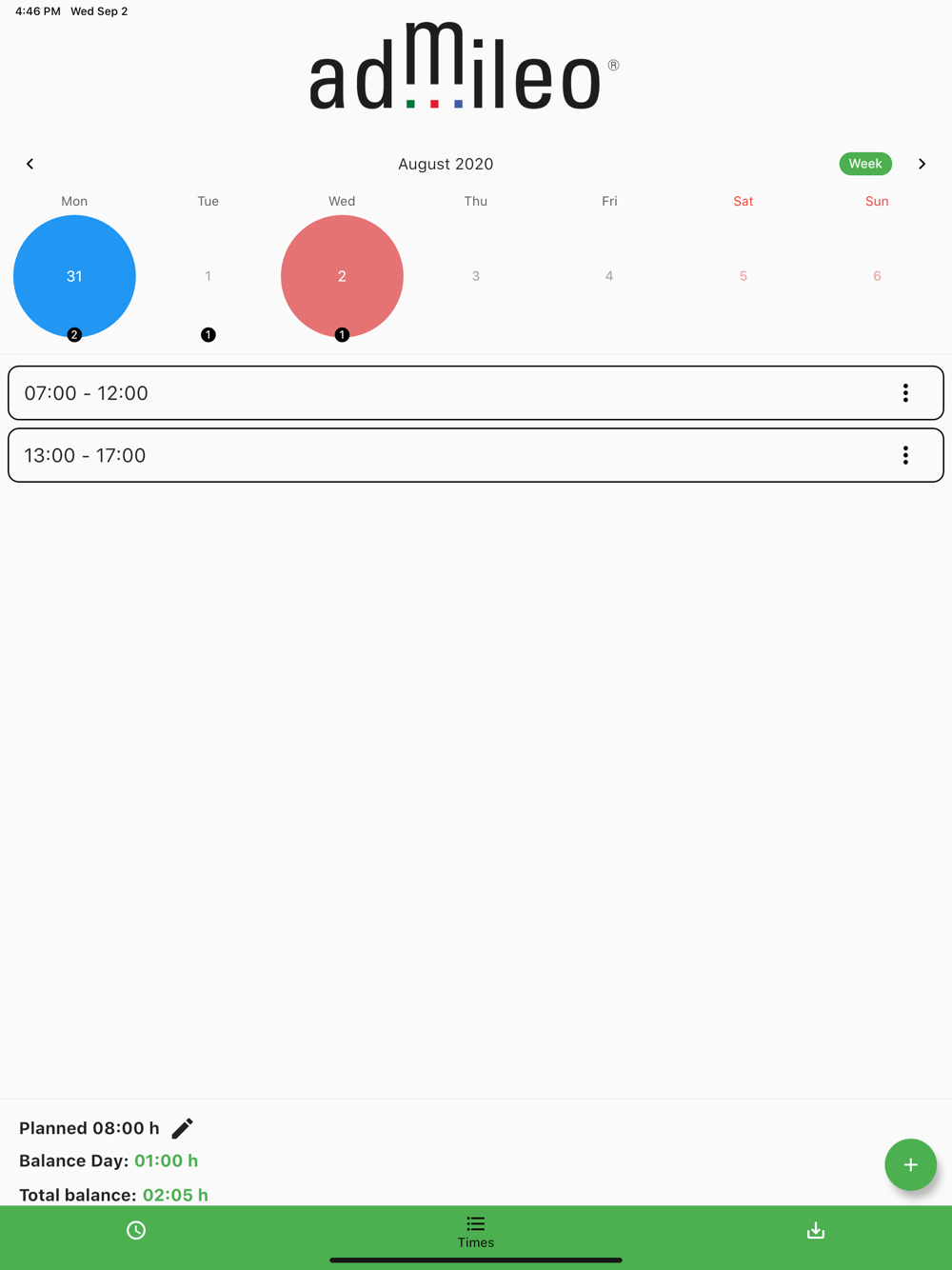 admileo Time is a smart, uncomplicated and free app for time recording for small and medium-sized companies.