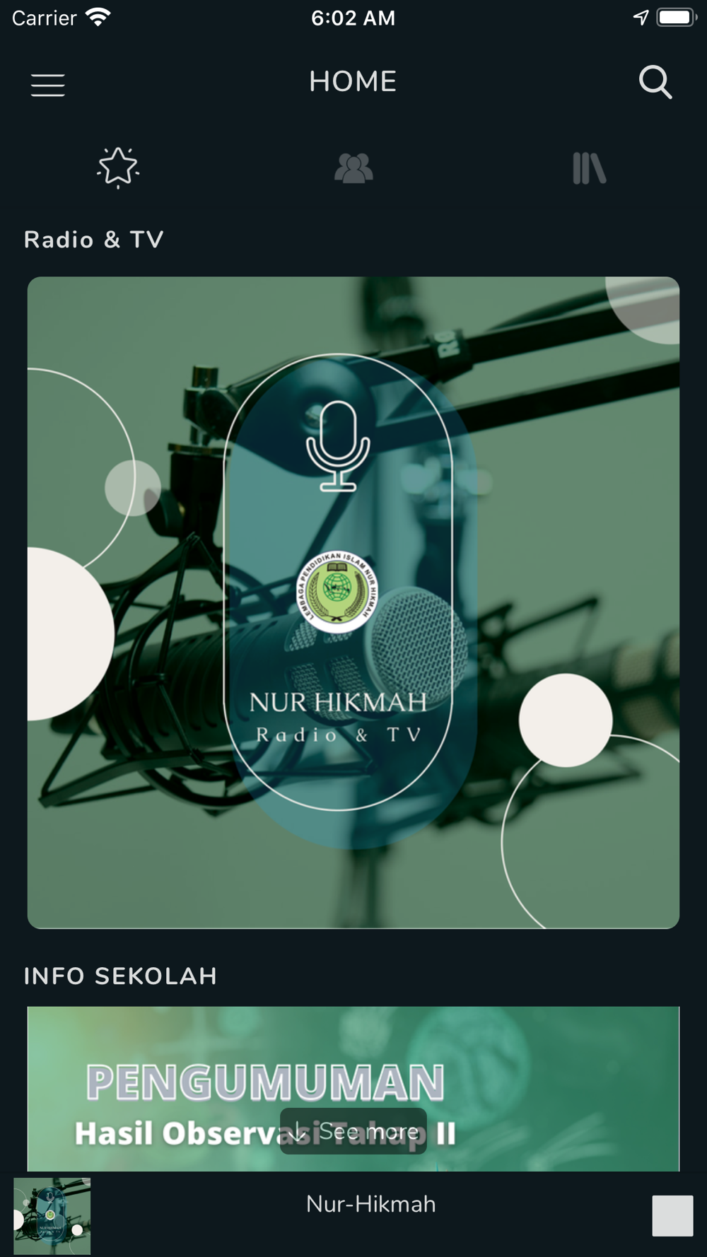 Aplikasi Nur-Hikmah merupakan media belajar mengajar online untuk Yayasan Nur-Hikmah yang berisi materi pembelajaran dalam bentuk audio, video, dan dokumen on demand, serta live streaming kegiatan mengajar. Di dalamnya juga tersedia konten edutainment sebagai hiburan.
