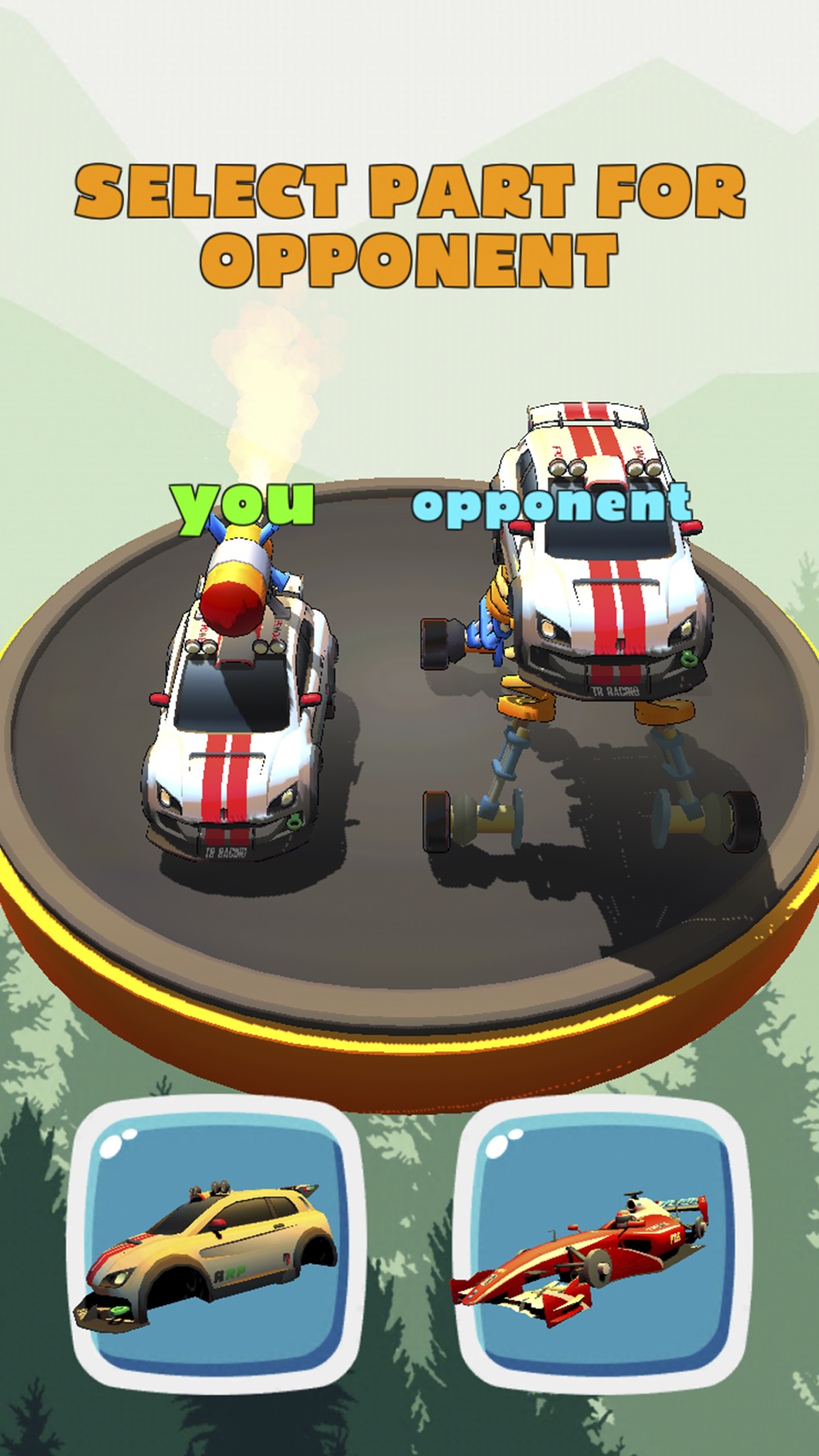 You are given a choice two times. Your task is to choose the worst spare part for your opponent. Then try to win the race. Choose wisely.