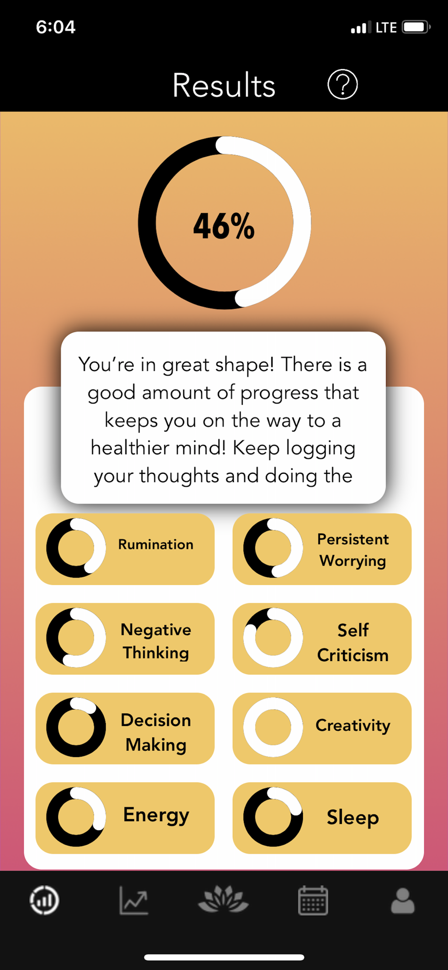Shanti provides a user specific platform that will help you find your path to a clearer mind. Designed especially for those who suffer from anxiety and overthinking, Shanti will lead you to an improved mind and a positive mindset. Our main feature consists of the Daily Quiz, which calibrates your mental state in 8 different categories: Rumination, Persistent Worrying, Negative Thinking, Self Criticism, Decision Making, Creativity, Energy, and Sleep. Daily and weekly stats are also displayed so you can track your progress and work towards specific goals. Utilizing an algorithm that analyzes your results from the Daily Quiz, we recommend activities for you to complete. These activities are proven to clear the mind of anxiety and overthinking. Once an activity is completed, you can revisit your thoughts to help you stay grounded and avoid anxious thoughts. Daily use of Shanti will guarantee to reduce your anxiety and improve your mental health. Create an account today!