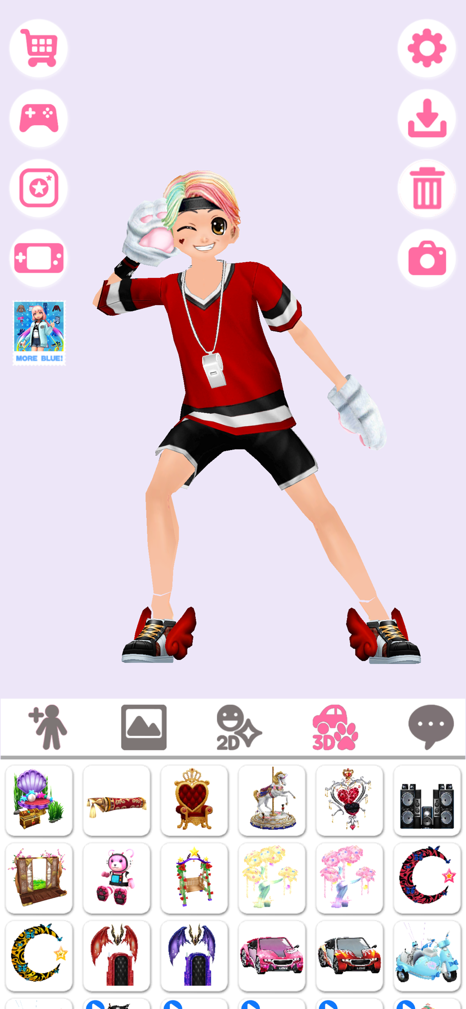 1. Use thousands of costumes, backgrounds, and dialogue bubbles to create your unique 3D Avatar.