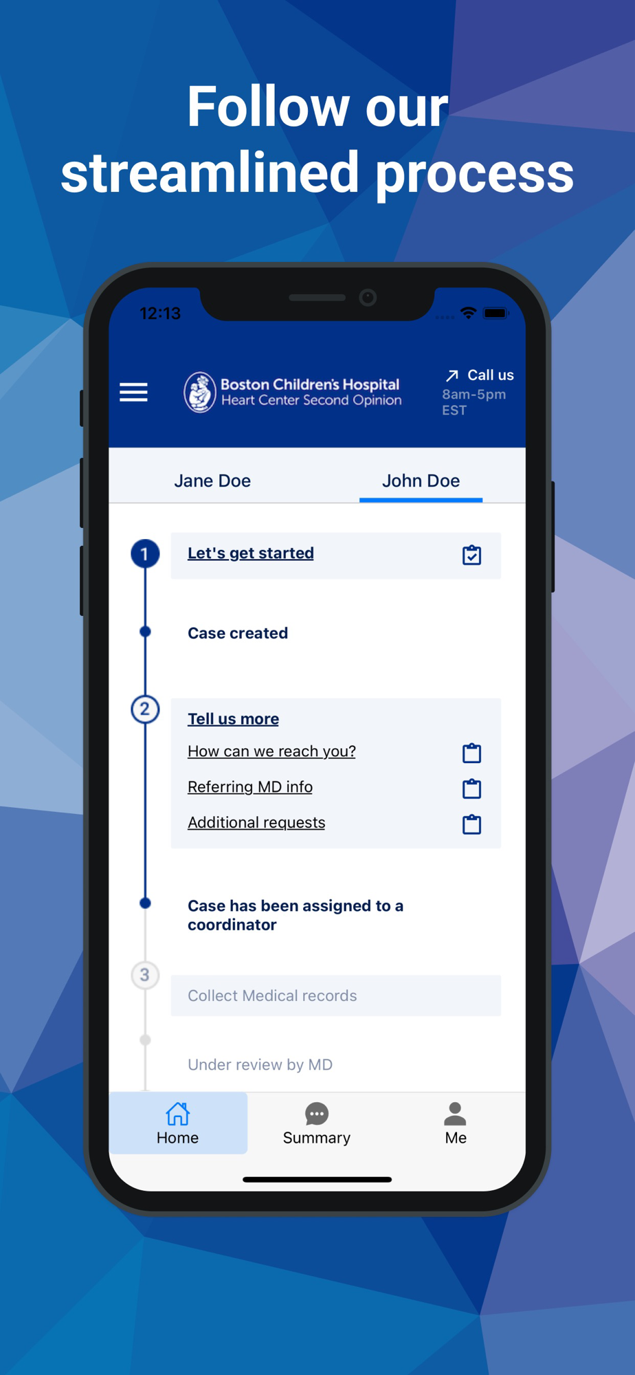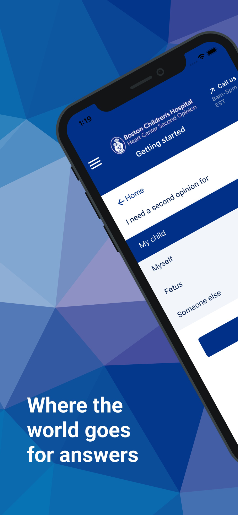 With the HeartOpinion second opinion app, pediatric and adult congenital heart patients from around the world can request a second opinion from Boston Children’s Hospital's Benderson Family Heart Center. Register and share your story and questions with us using your phone. The team at the Benderson Family Heart Center will review and get in touch directly with you to begin the process of collecting medical records.