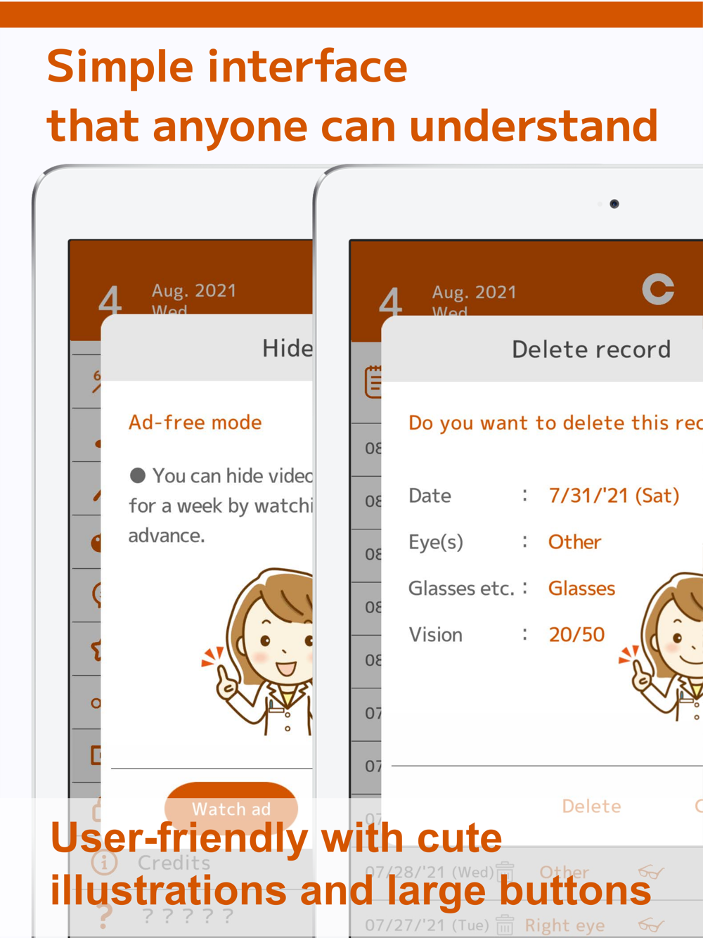 For example, you can use the app when renewing your driver's license or as practice/mental preparation before a vision measurement at your health checkup!