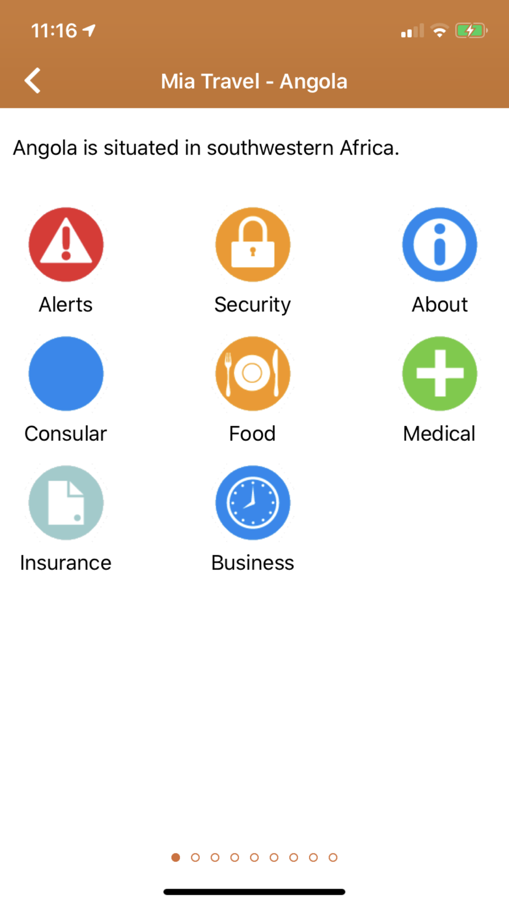 Mia Travel downloads the latest alerts for your destination, giving you current security updates that might affect you. On the home screen you can easily see how many new alerts have come in since you last read them.