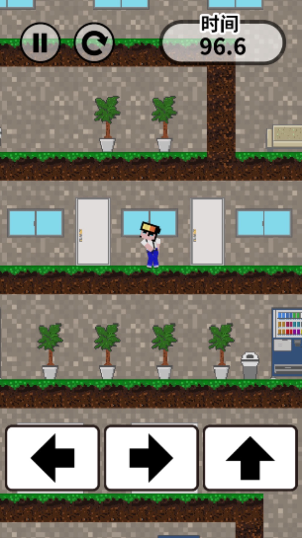 1.这是一个帮助男人寻找厕所的游戏。游戏一共有20个关卡,玩家通过控制向左或者向右行走,以及向上跳跃,顺利找到厕所就可以进入到下一个关卡。