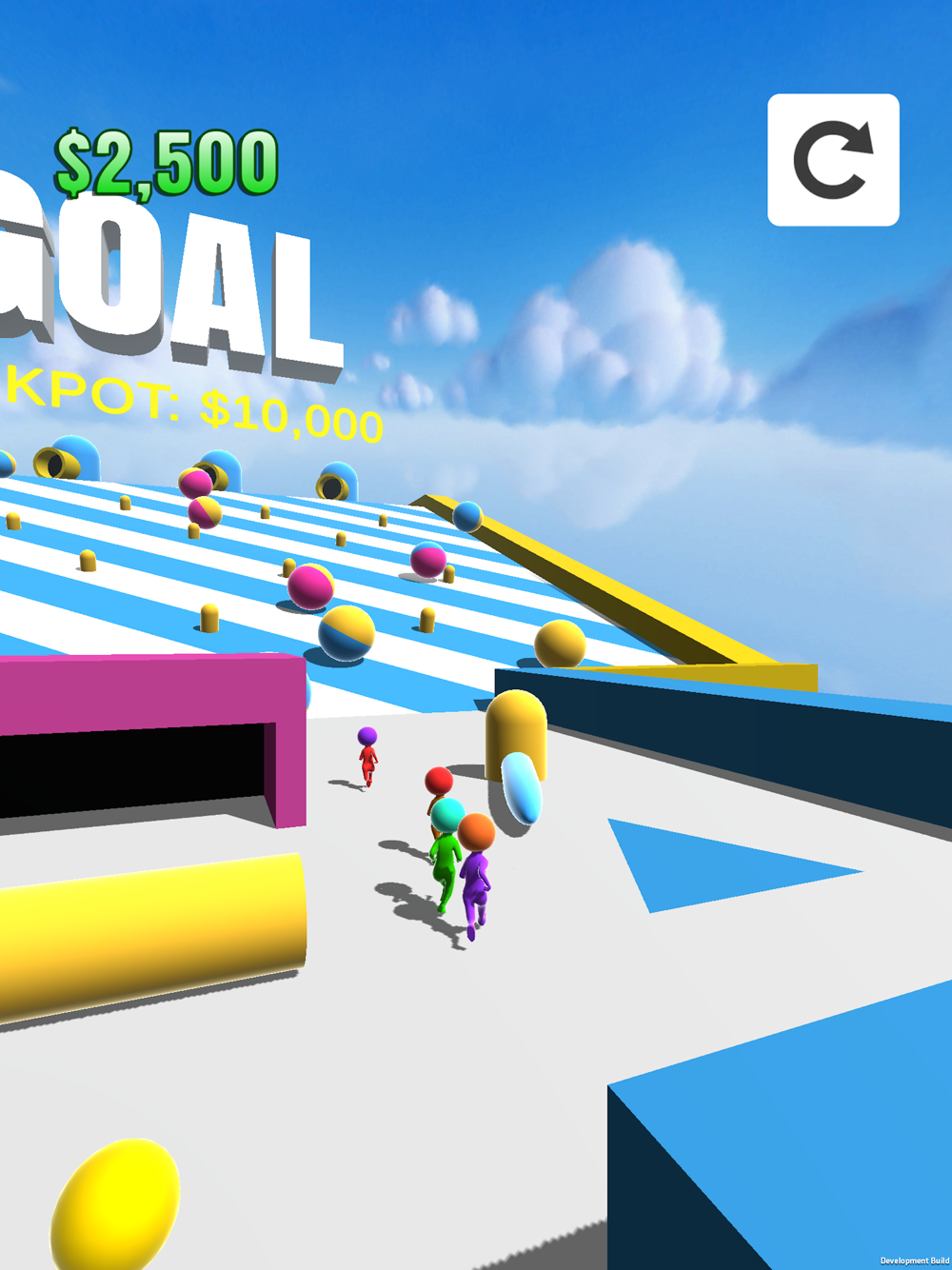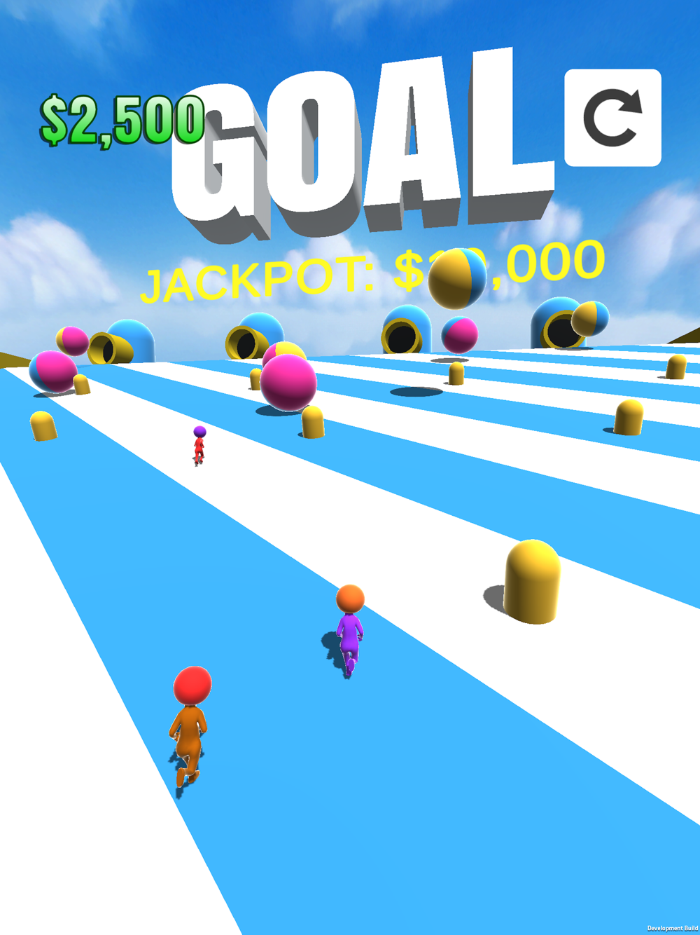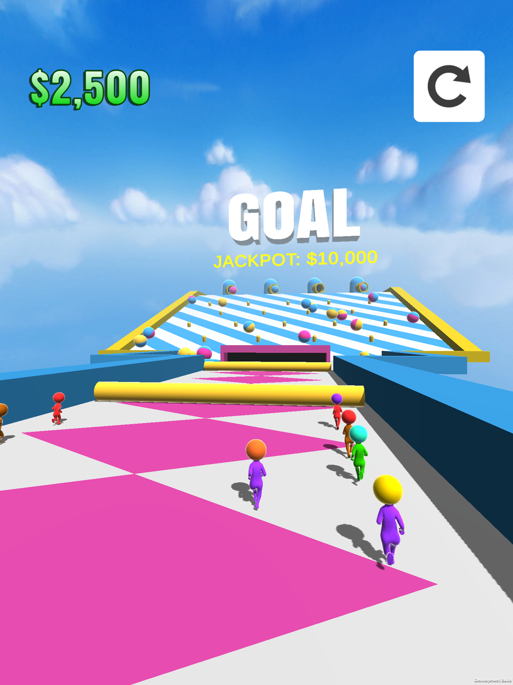 It's a race to the finish in his wacky obstacle course. Finish first and win the jackpot!