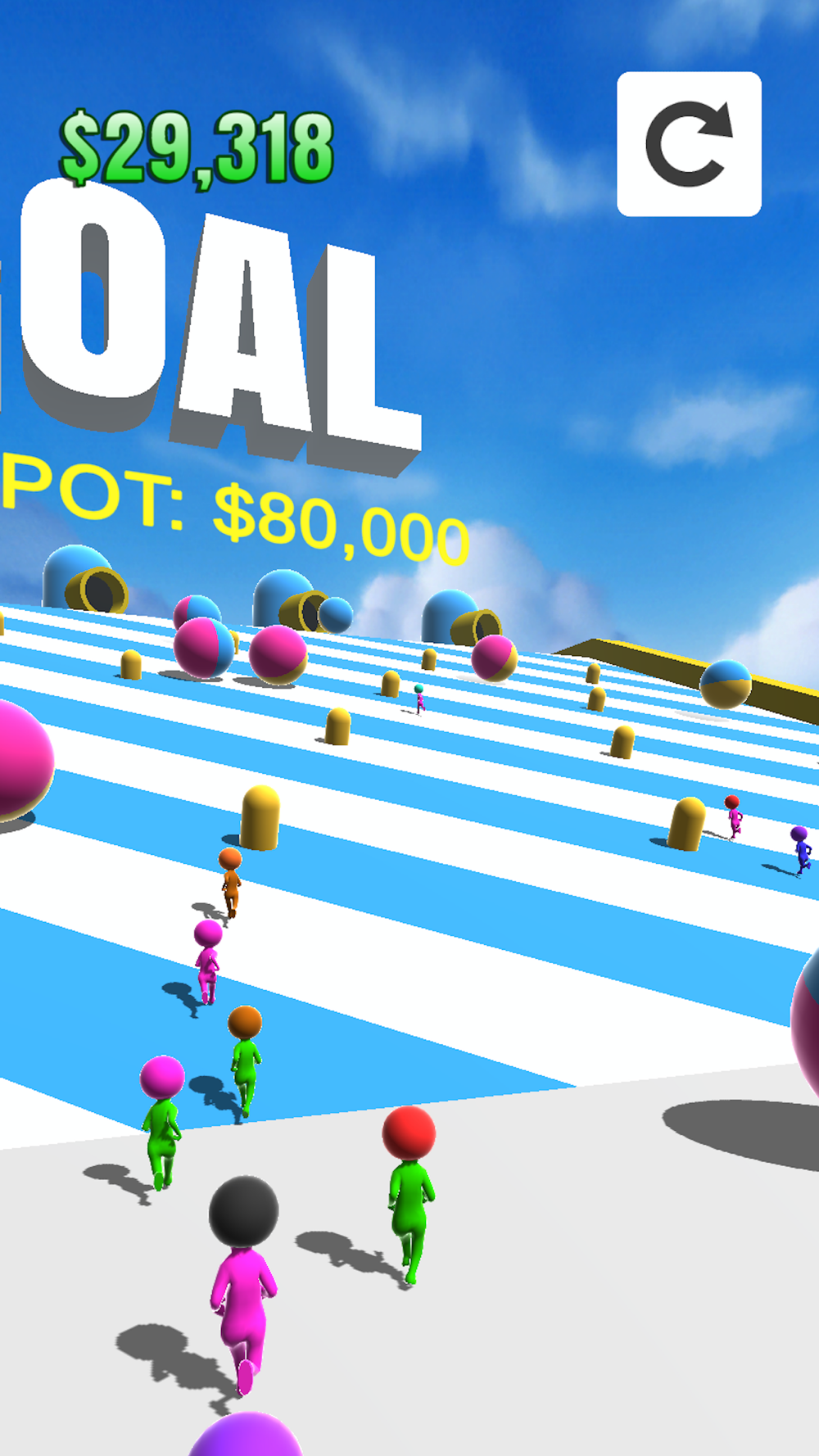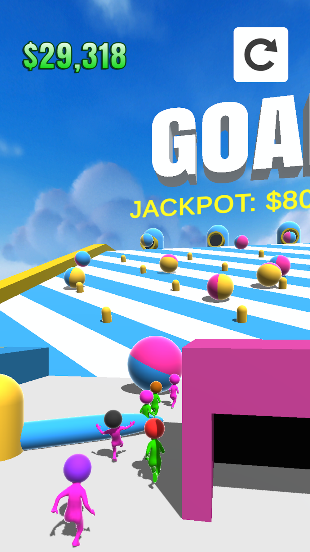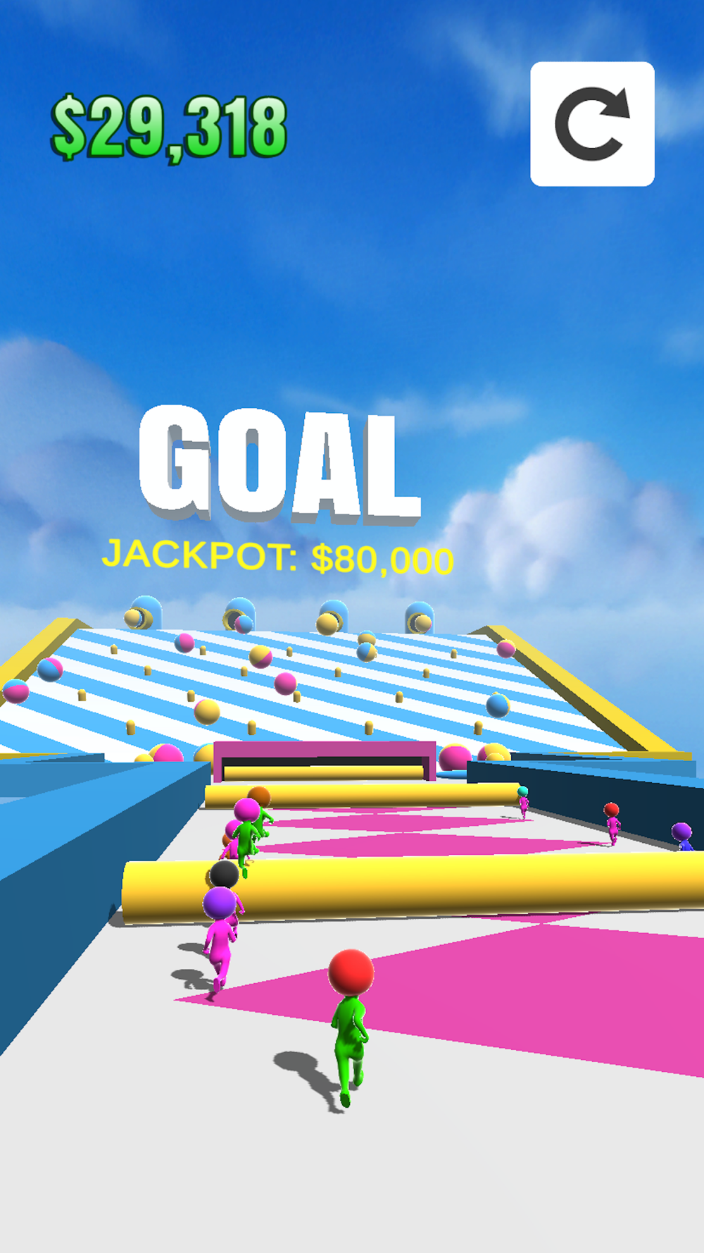 It's a race to the finish in his wacky obstacle course. Finish first and win the jackpot!