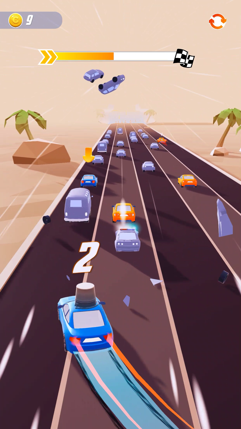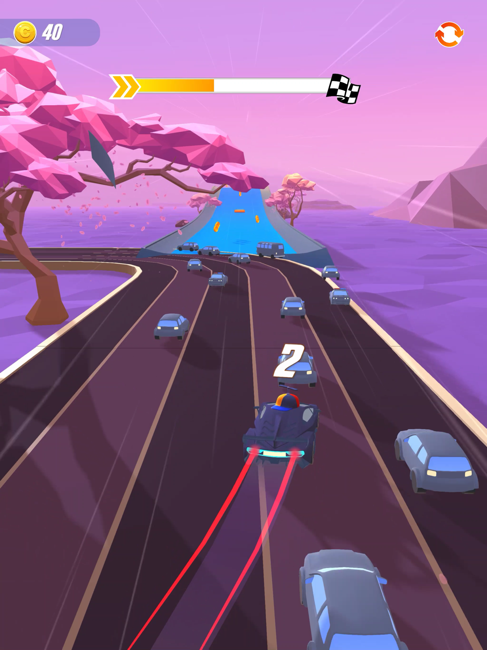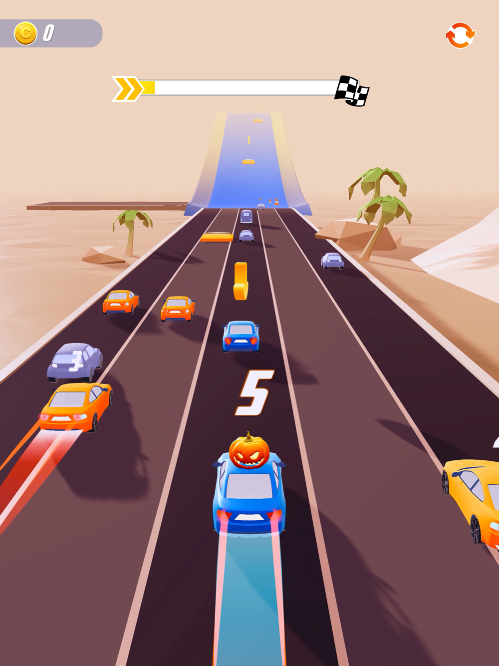Only the fastest and most courageous will come to the finish! Challenge desperate rivals in a crazy race! Merge cars of your color to become faster. Watch the road carefully and try not to fly into the abyss. Take down everything in your path and show who is the king of the road!
