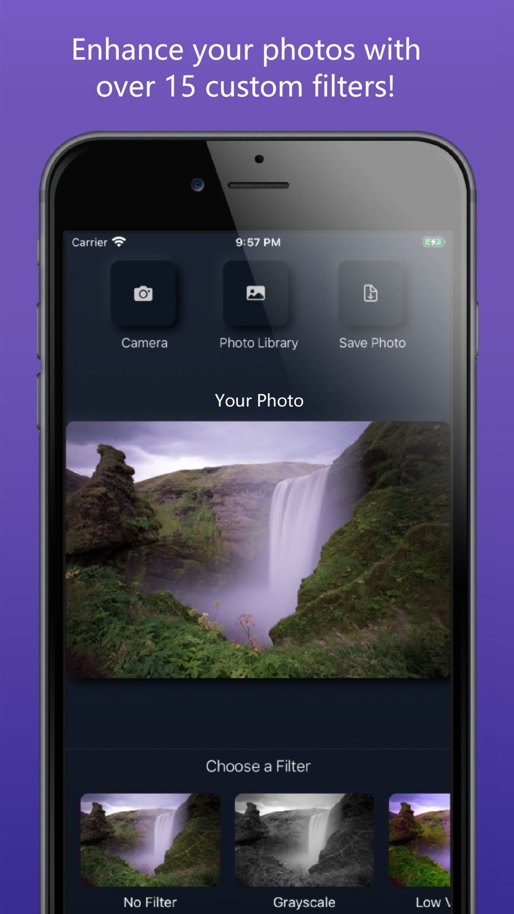 All filters are preset to make it as easy as possible for you to enhance your photos. No over-complicated customization.