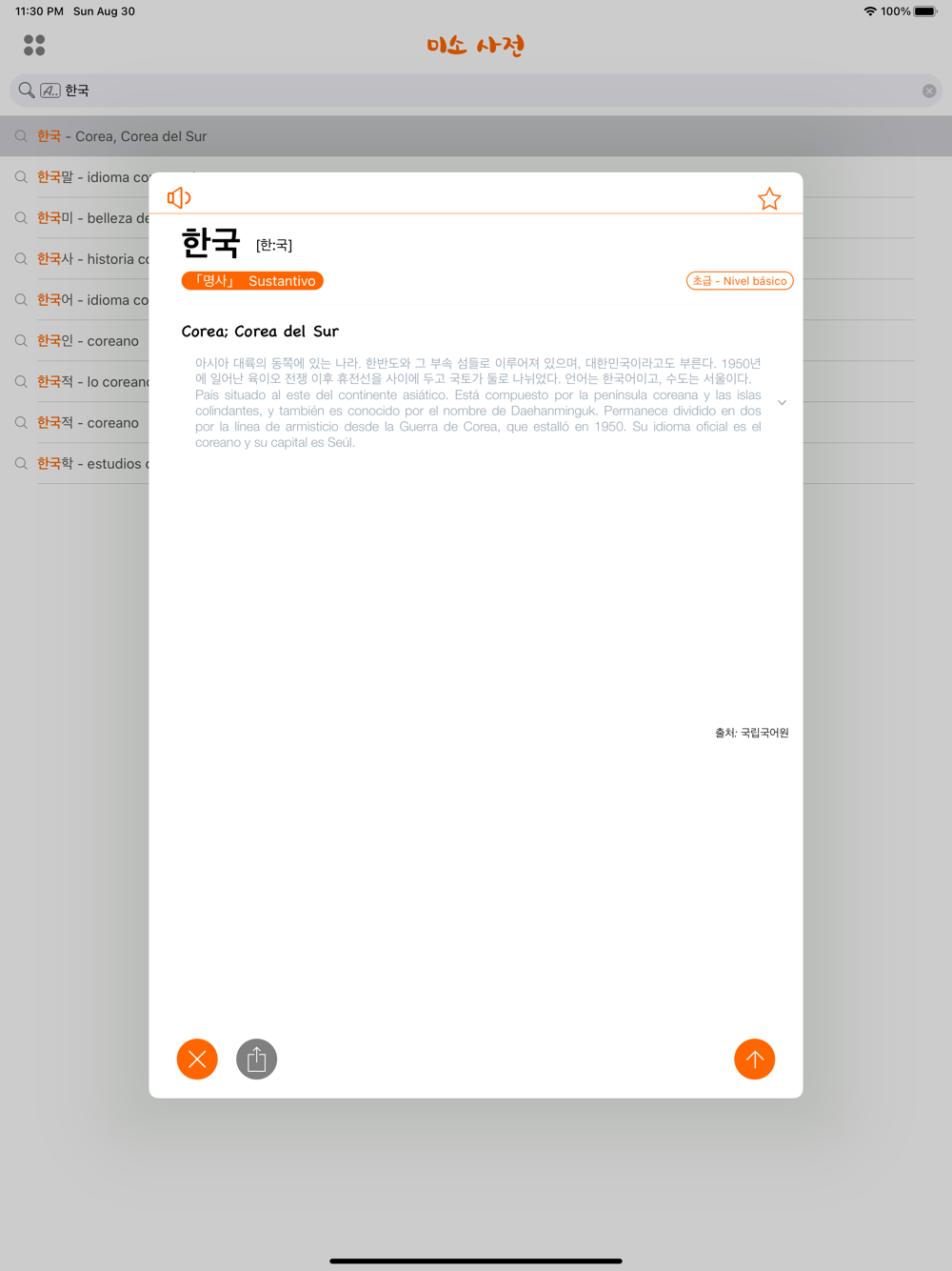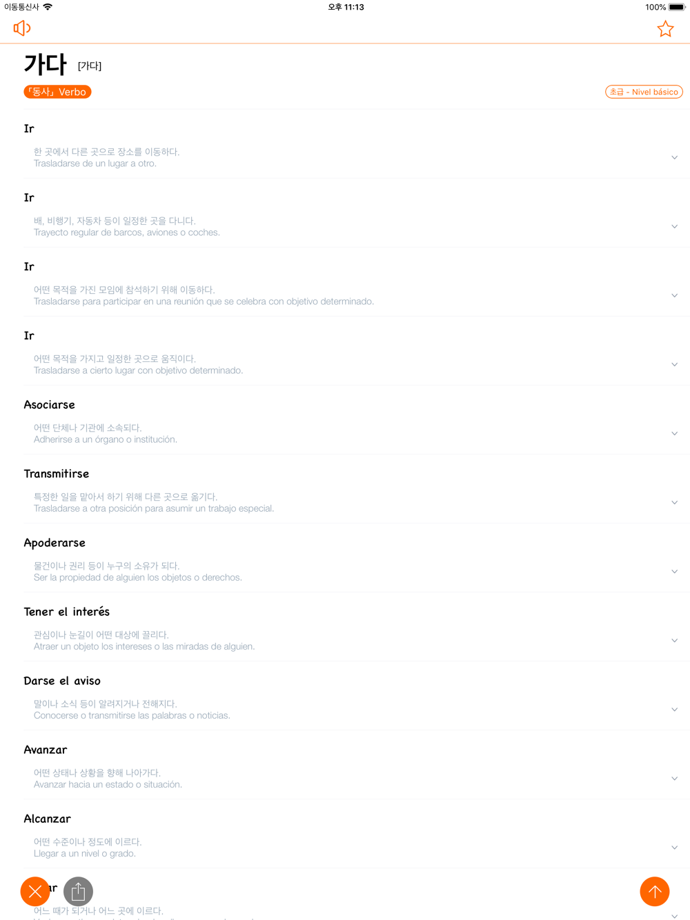Korean-Spanish-Korean dictionary app containing around 50 thousand words of beginner, intermediate, advanced levels.
