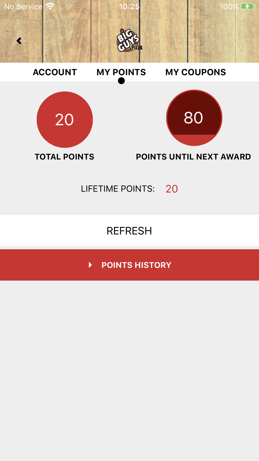 The official mobile app for Big Guys Pizza is now here, bringing you the ability to order from all Big Guys Pizza locations. Ordering from Big Guys Pizza is as easy as eating a Pizza! With this app you can track your loyalty points, view your coupons, pay with your gift card and order your favorite food online.