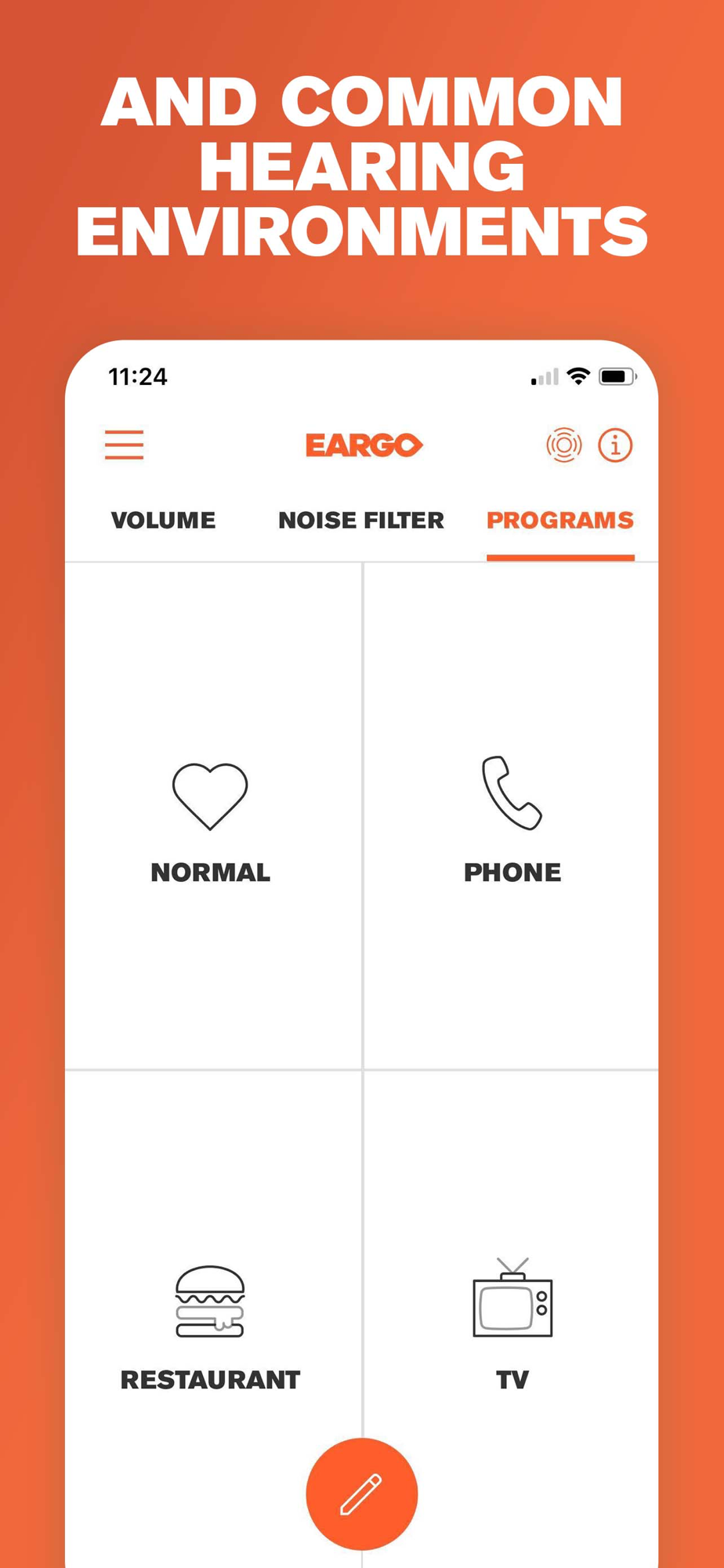 - Make discreet, on-the-go adjustments right from the app to your in-ear hearing devices. Change the program, adjust the volume, mute or unmute, and increase or decrease the Noise Filter for your preferred speech clarity.