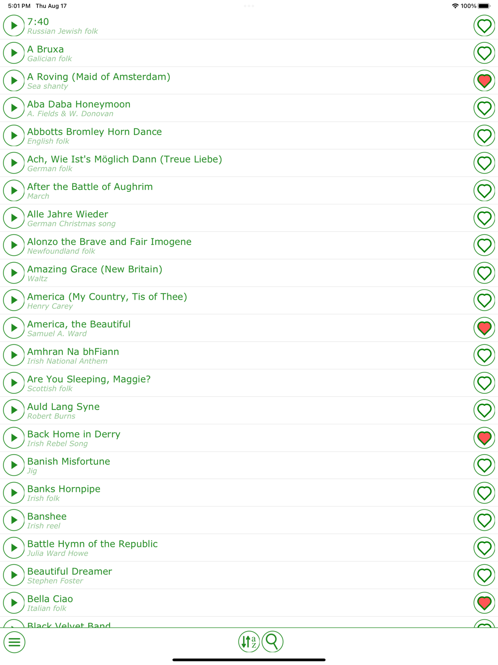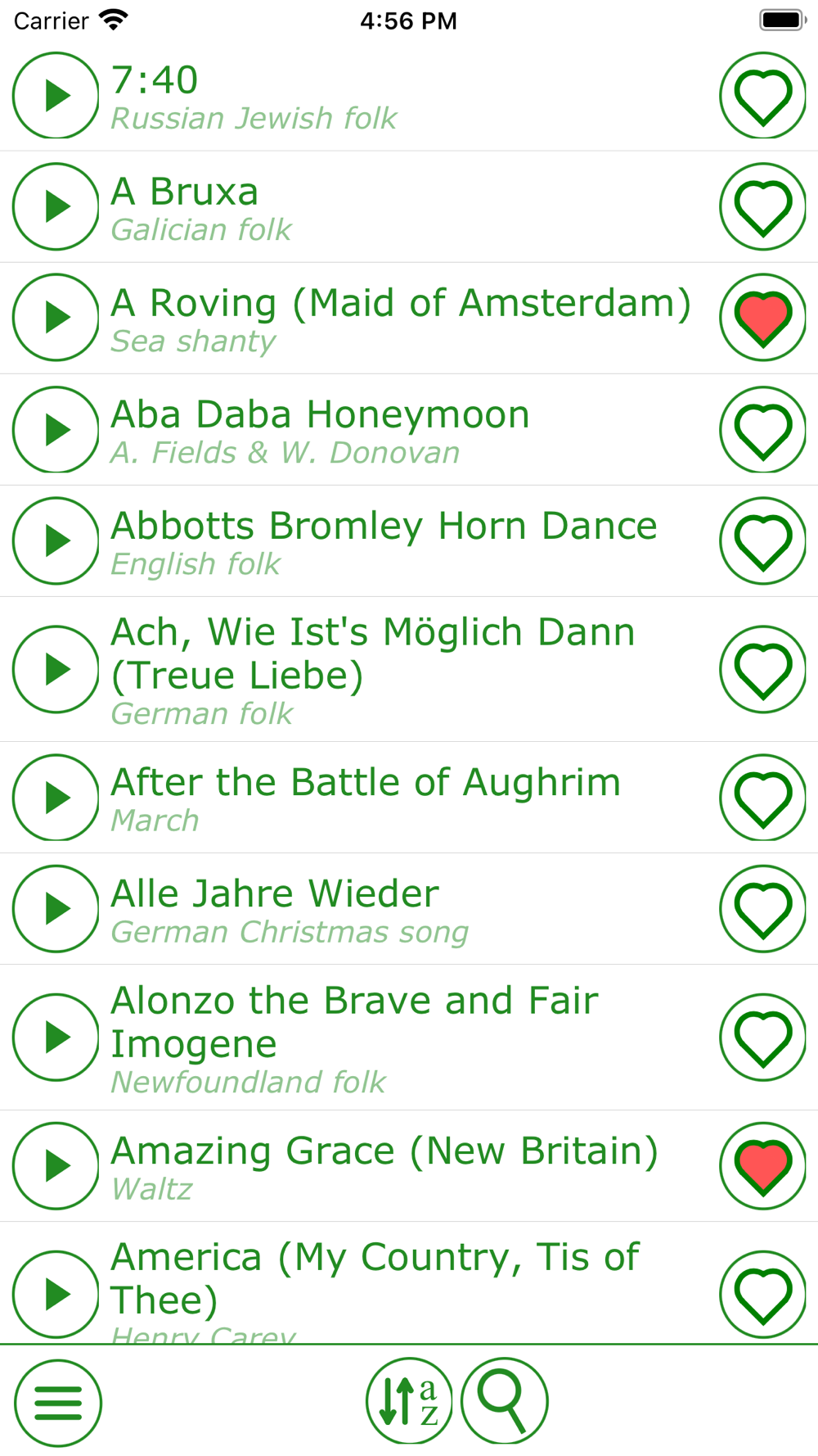Interactive collection of sheet music with notes and tablatures for mouth harmonica. This app will help you to learn playing popular traditional melodies, and some other tunes from the public domain.