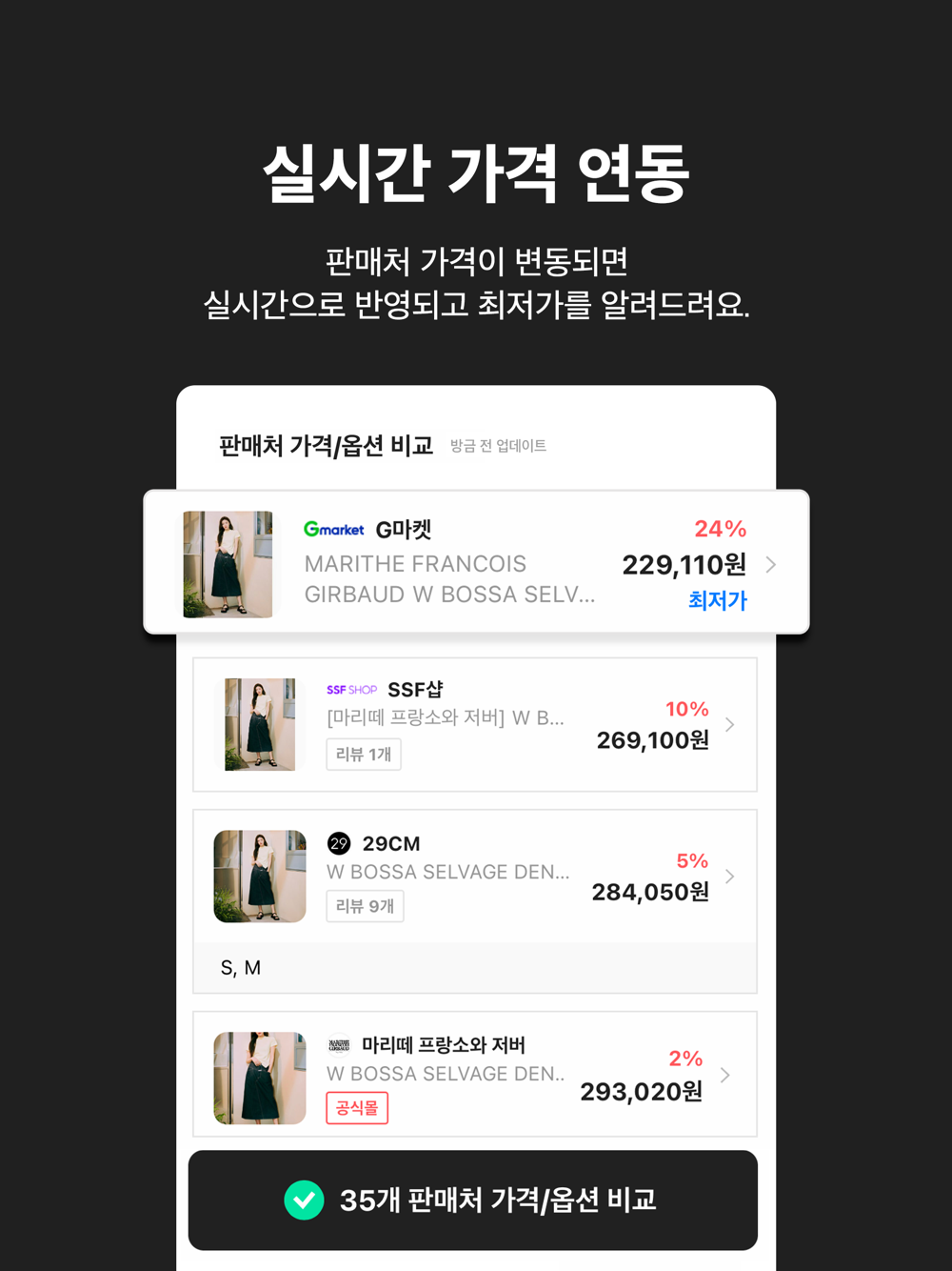 판매처의 상품 가격을 실시간으로 반영합니다. 가격 정보를 더이상 놓치지 말고, 바로 확인해보세요!