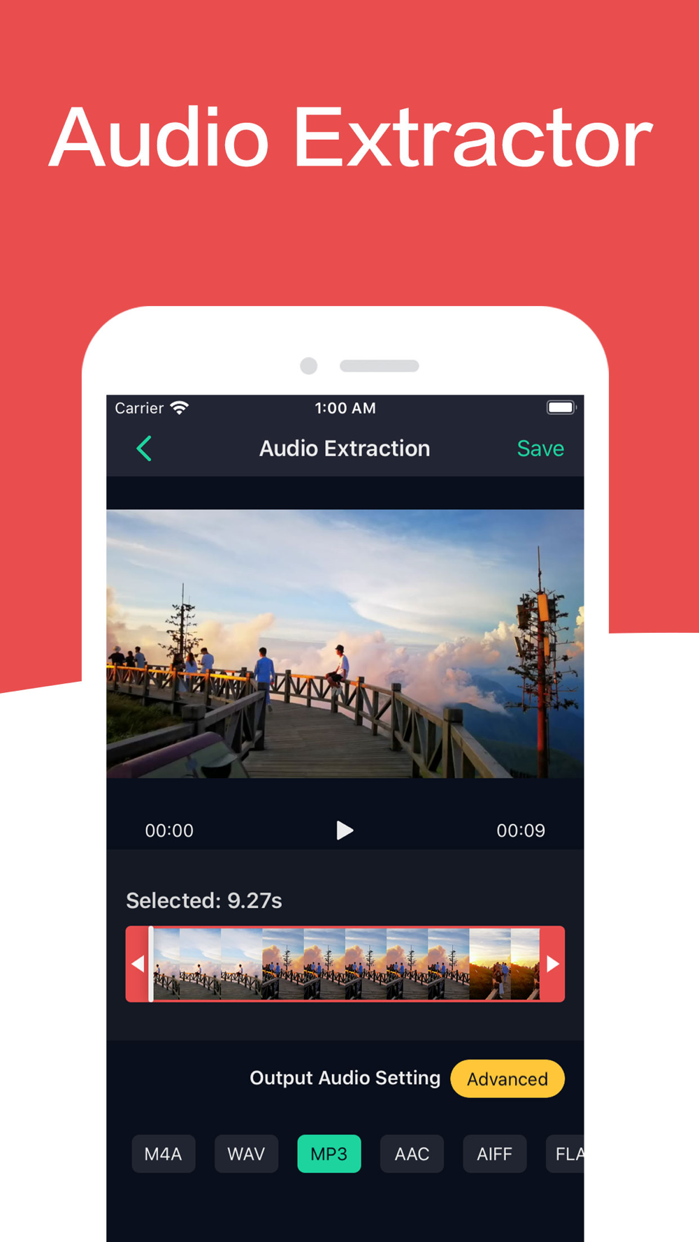 Support audio format conversion, support m4a, wav, mp3, aac, aiff, flac, caf and other audio formats