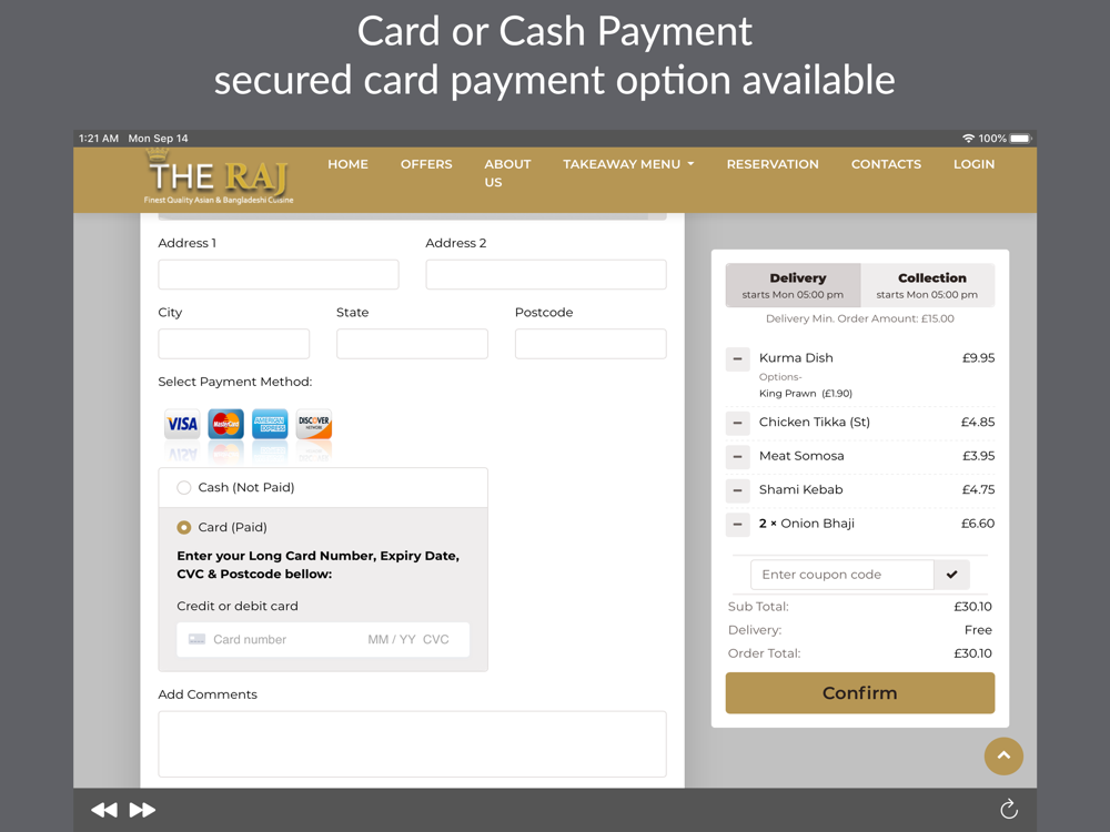 The Raj in New Milton is an Indian Restaurant & Takeaway. Serving Indian food over 35 Years.