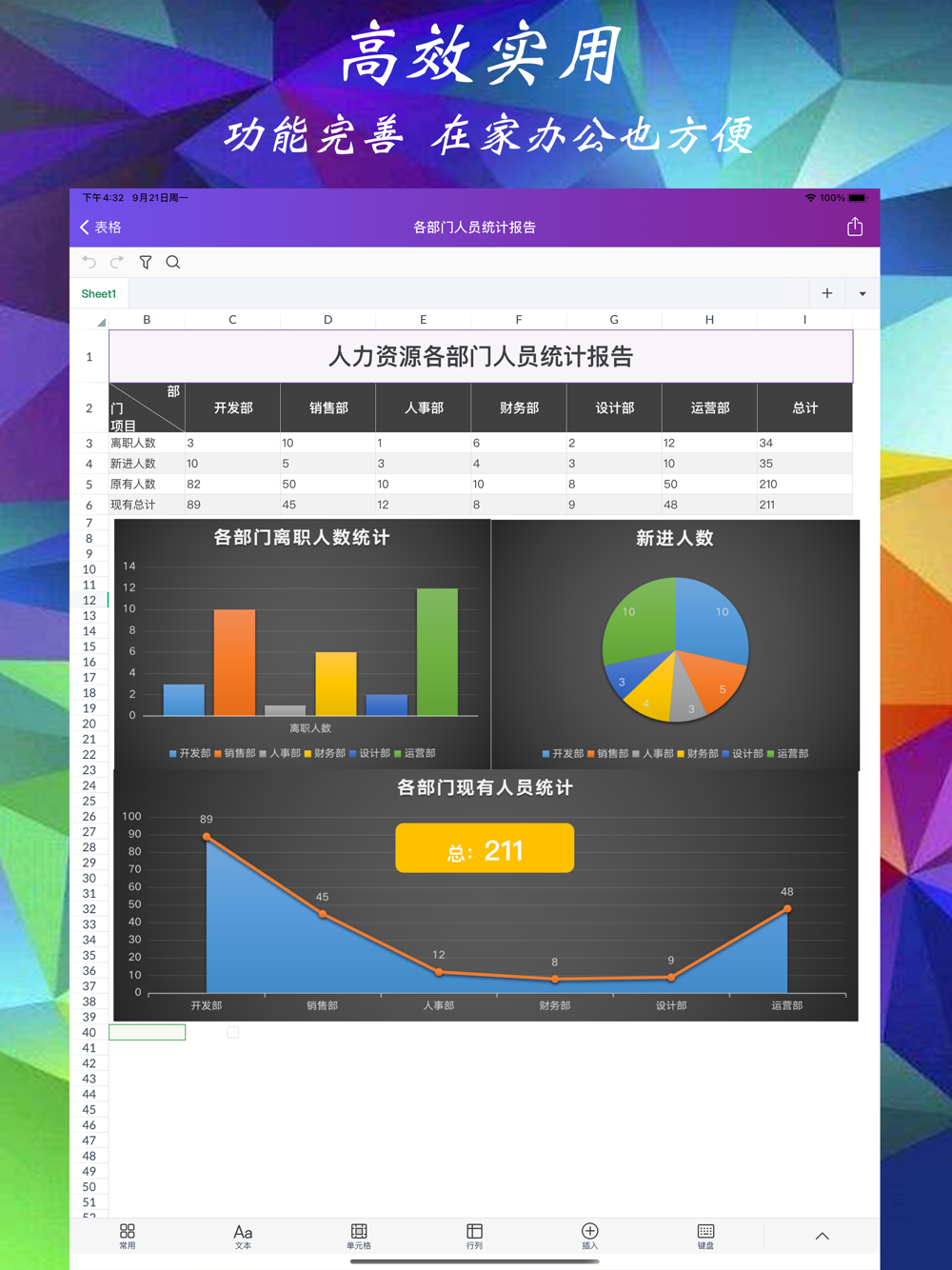 可创建模板、编辑电子表格、组织图表和轻松共享。