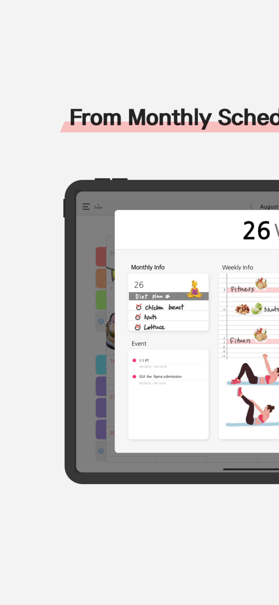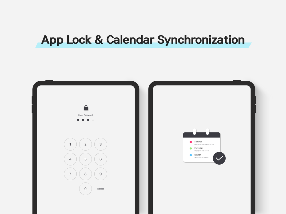 It consists of monthly, weekly, daily, journal, and memo. These screens can be easily moved by intuitive gestures.