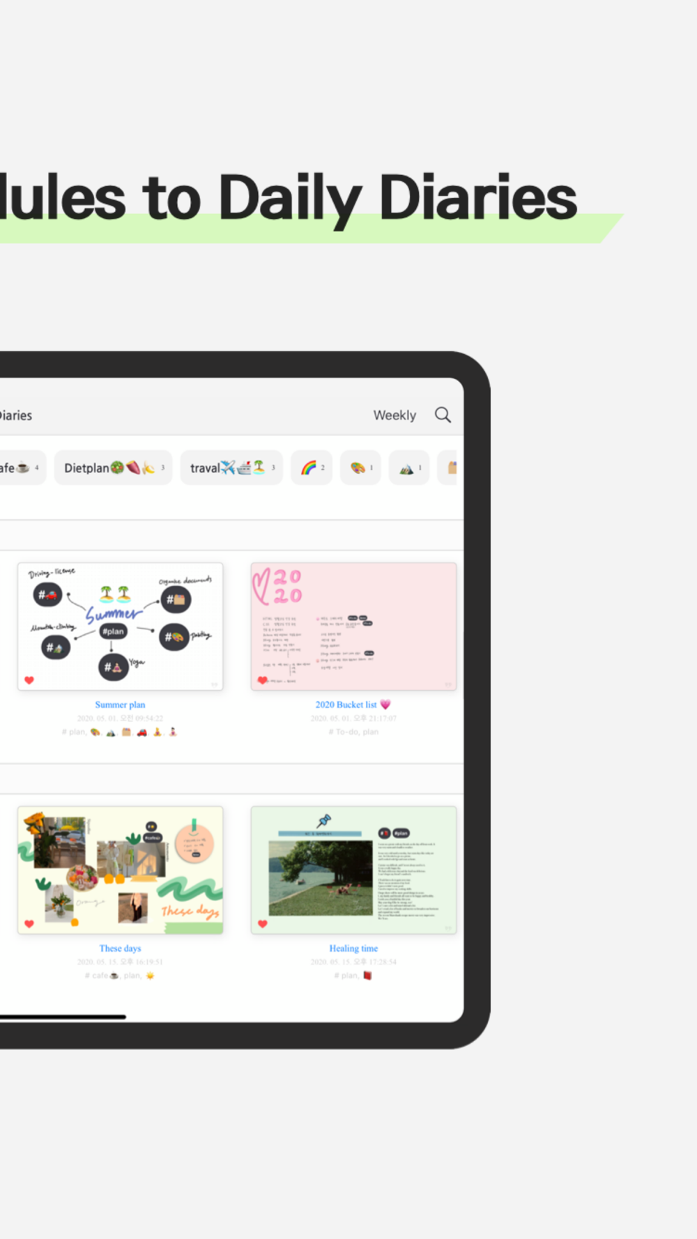 You can add hashtags to your diary, so you can systematically classify various diaries.