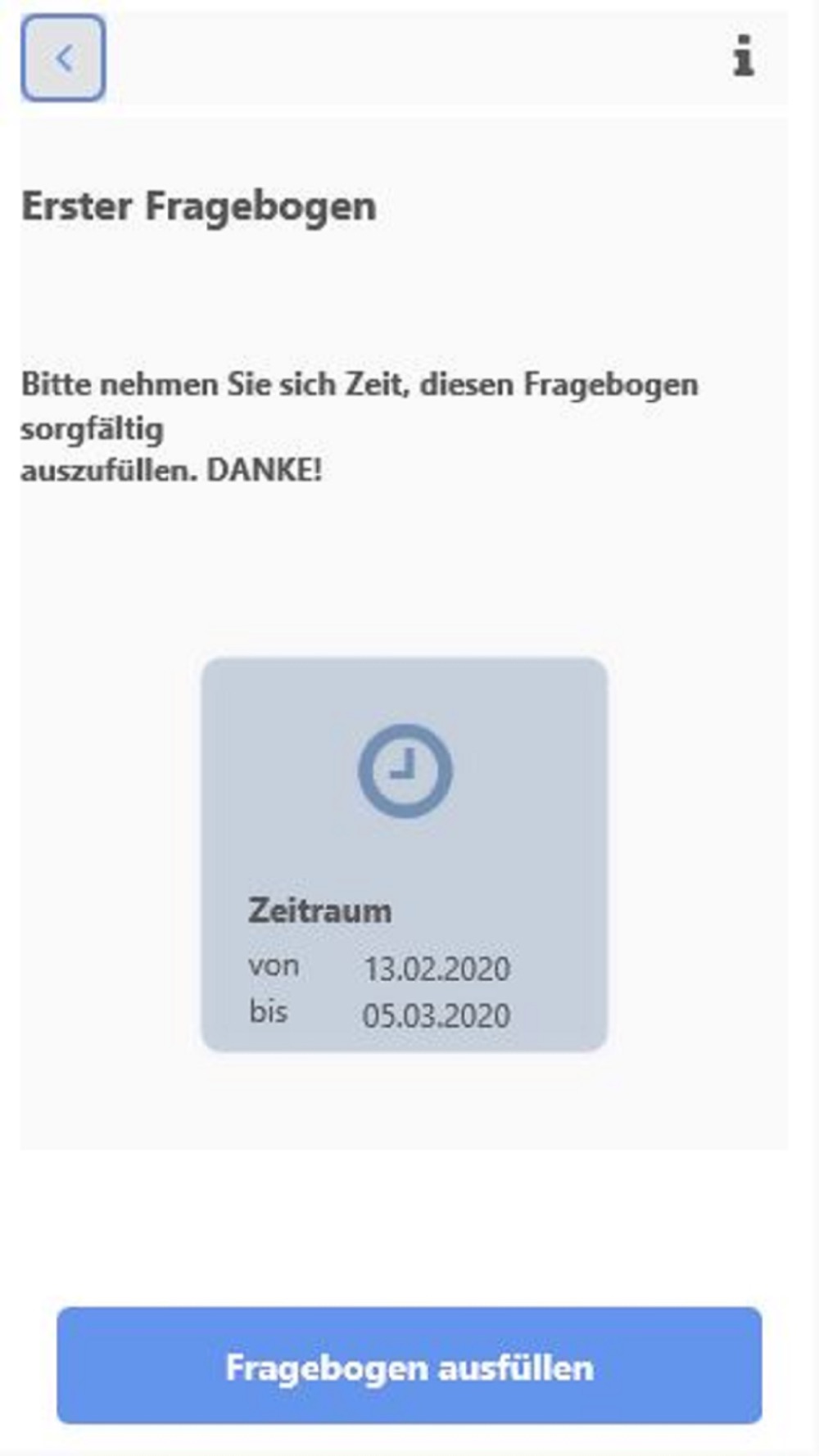 Im Rahmen des Innofonds-Projektes EsmAiL werden mit Hilfe dieser App Fragebögen ausgefüllt und Hinweise zu anstehenden Terminen gegeben.