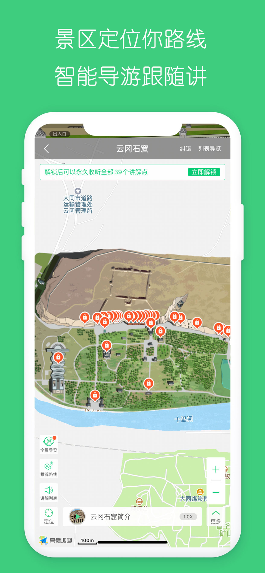 语音导览可以帮助用户在参观特定的旅游景点时获得智能景点的游玩指引,切换至后台时,仍会继续播报。景区嘈杂博物馆内也需要安静,建议带上耳机使用,收听效果最佳。GPS在后台持续使用将会影响电池续航时间