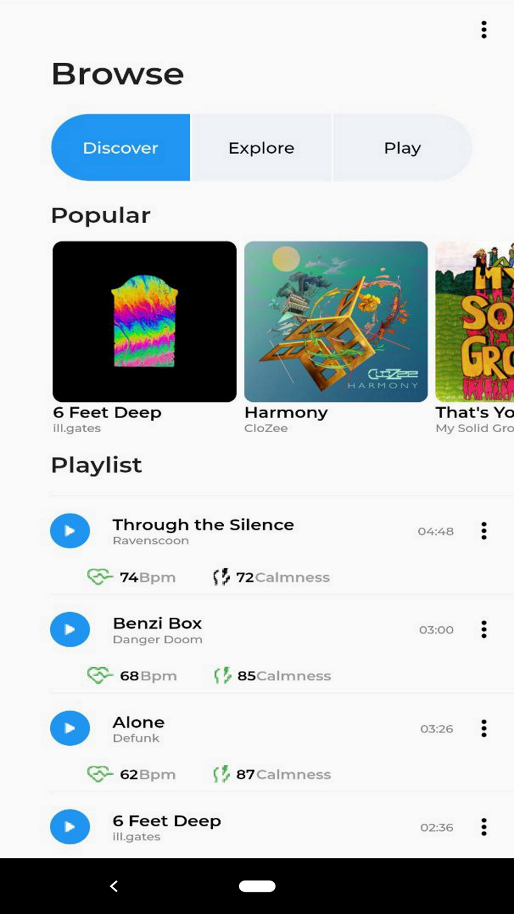 The app is based on solid scientific evidence, that correlates specific musical attributes such as Tempo, key, Complexity and Frequency, to Bio-markers such as Heart rate, Stress levels and respiratory rates.