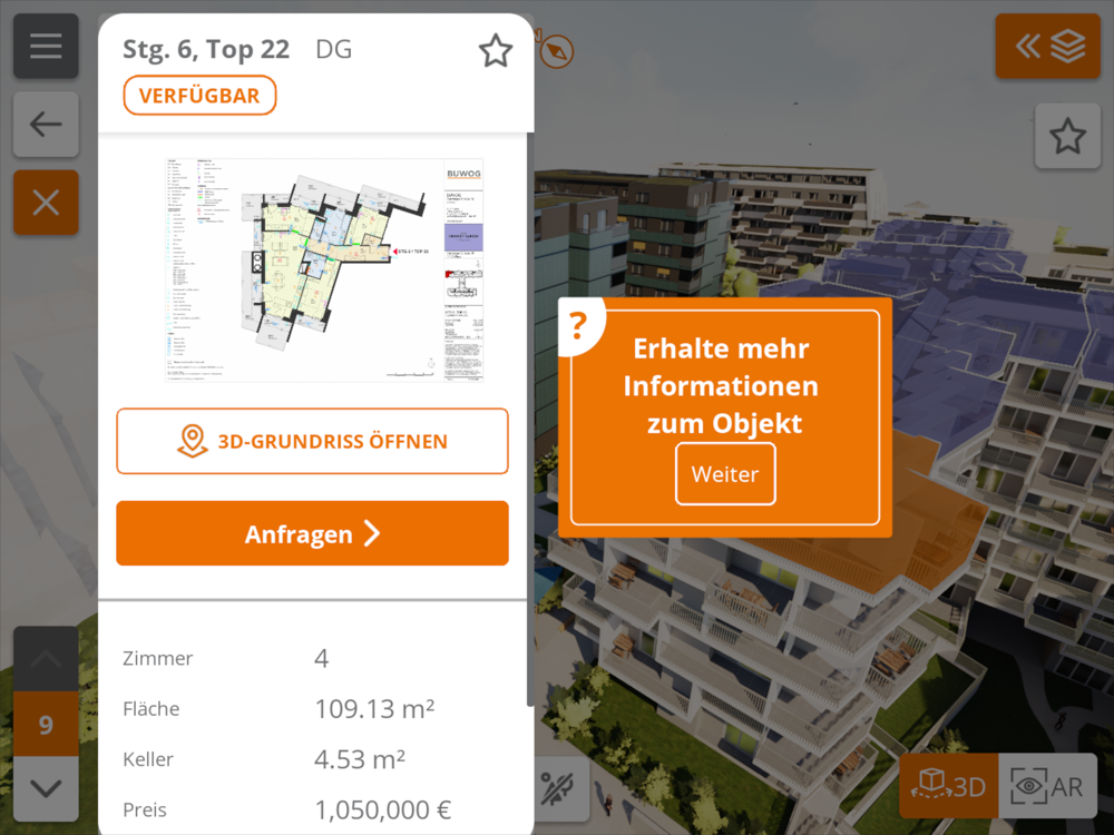 Mit der neuen App lassen sich die Projekte der BUWOG realitätsnahe in 3D darstellen. Tauchen Sie in unsere aufregende vielseitige Wohnwelt ein und erleben Sie die einzelnen Bauteile sowohl in Virtual Reality (VR) als auch in Augmented Reality (AR).