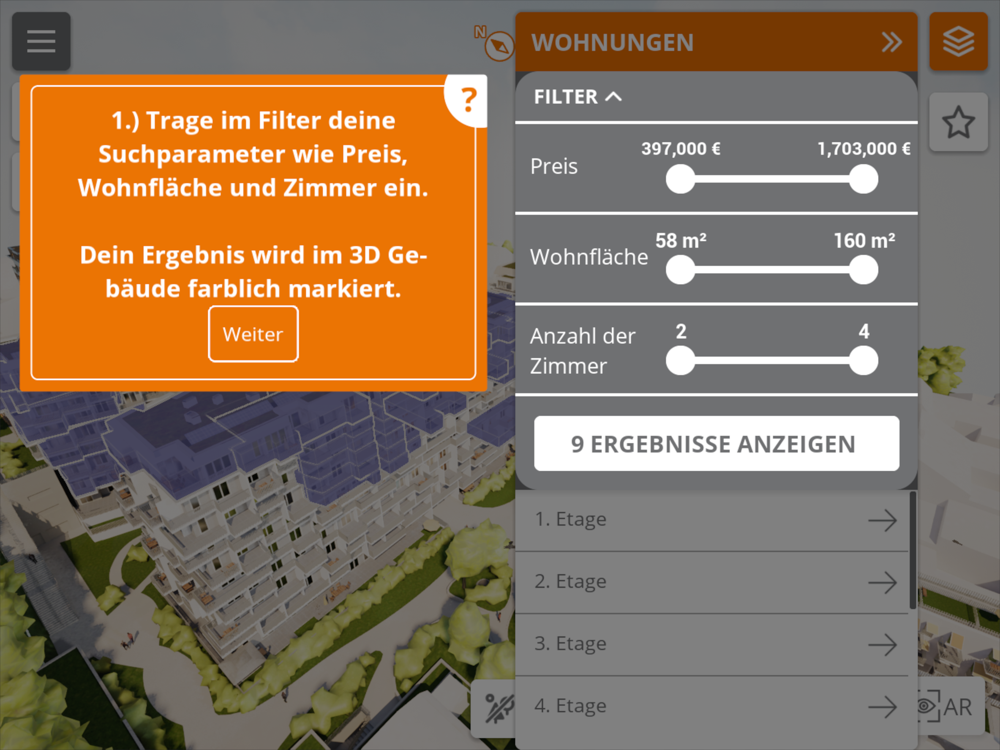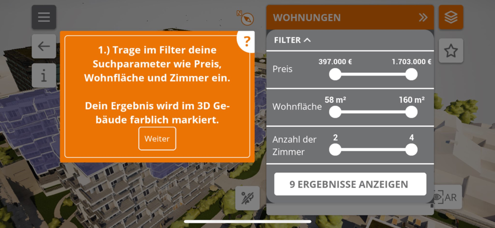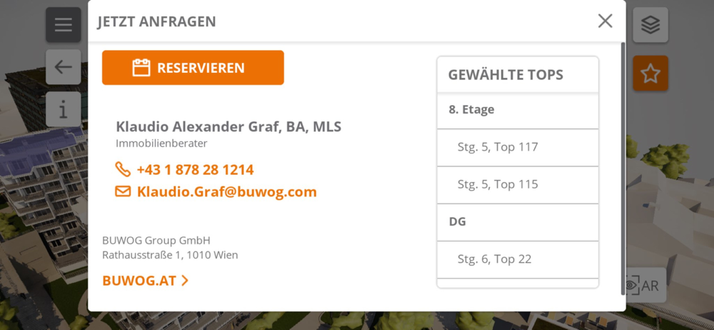 Die App erlaubt es Ihnen, ausgewählte Projekte ganz einfach und bequem zu besichtigen, egal ob von unterwegs oder von daheim.