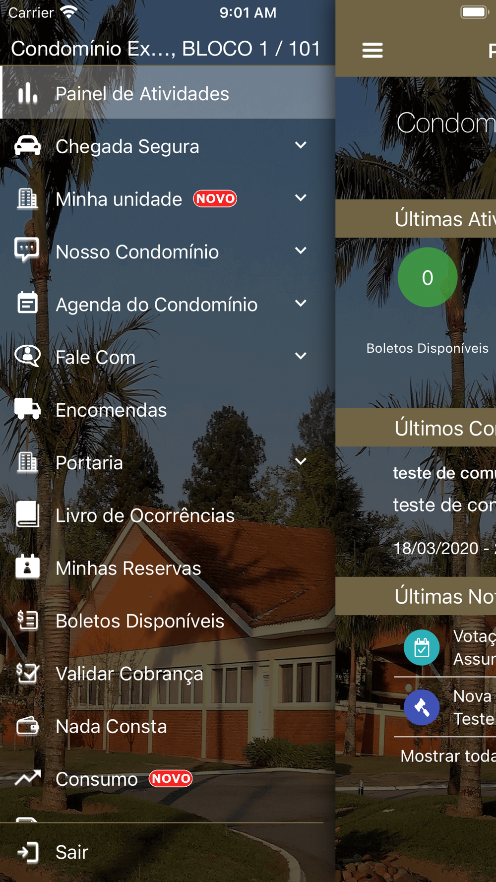 Visualizar cobranças em aberto da sua unidade e obter 2ª via de boletos (com recálculo automático de multas e juros);
