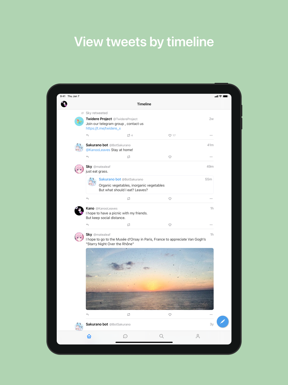 Timeline - See what's new and what's happening! Tweets are sorted by time, support for displaying retweets with comments, and quick display of discussion threads. Pictures, GIFs, and videos are displayed in a completely new design. Complete features to ensure your browsing experience.