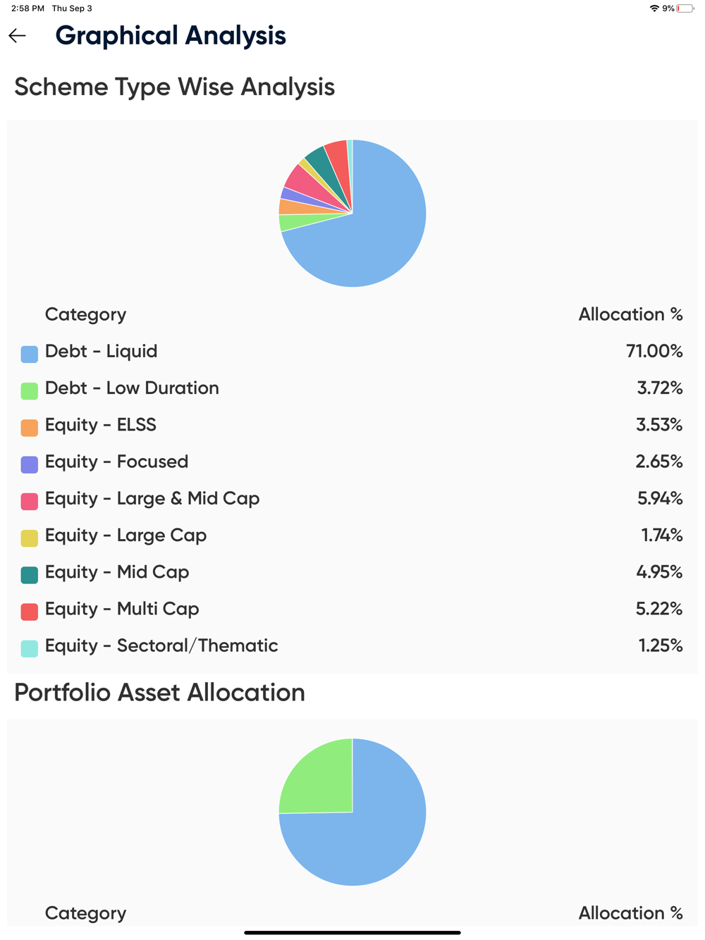 Analyze asset allocation, top equity & debt holding, sector exposure, XIRR returns, Profitability of portfolio on go, send portfolio report to clients on Whatsapp!