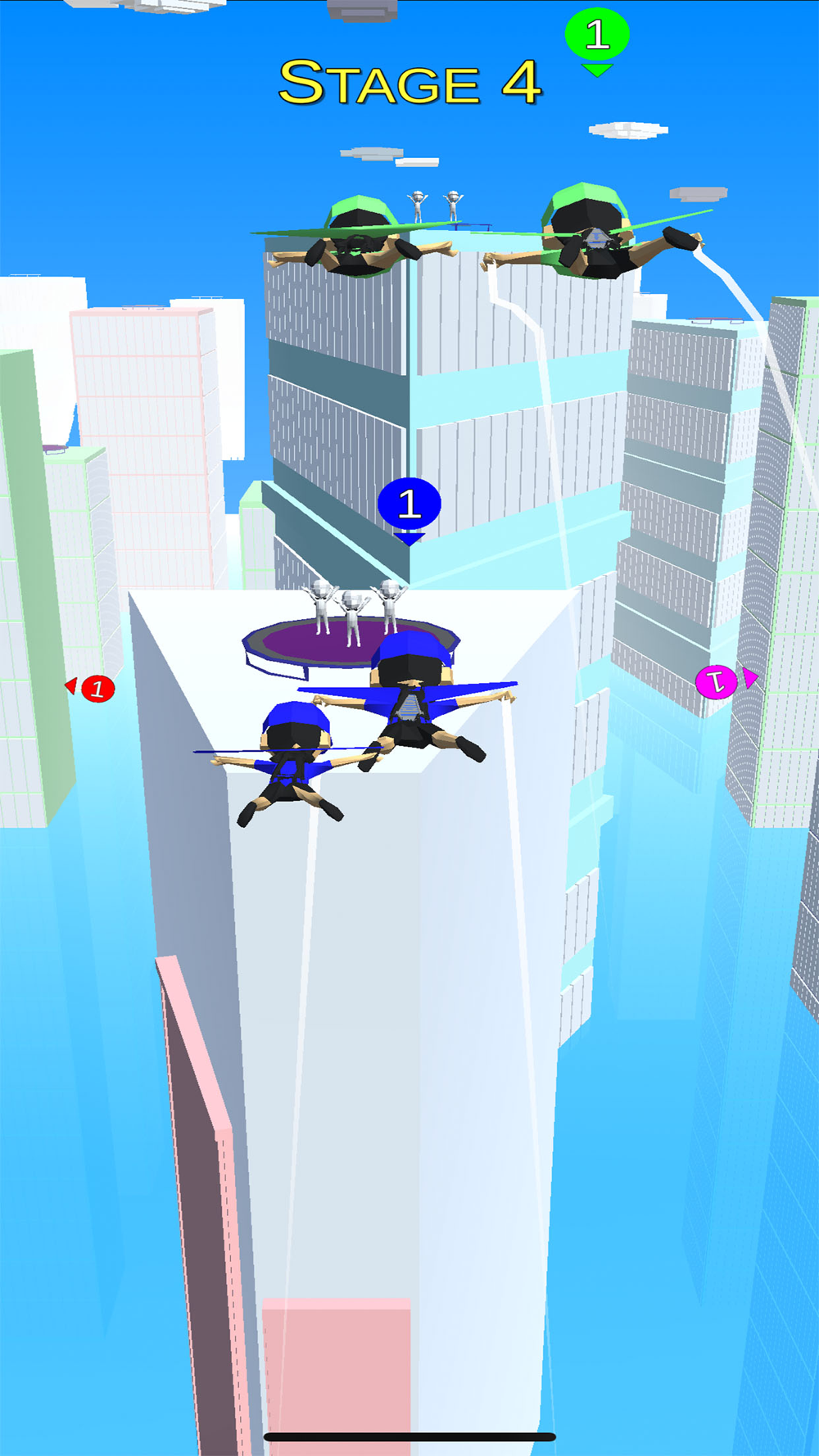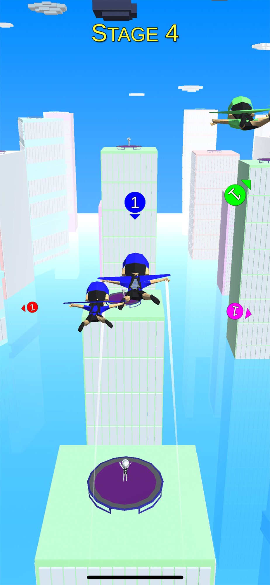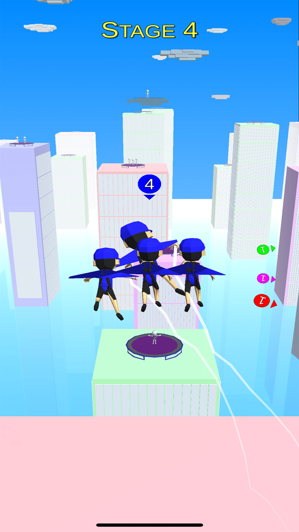 Jump and land on trampolines to collect your team and fly even higher! The person with most members win!