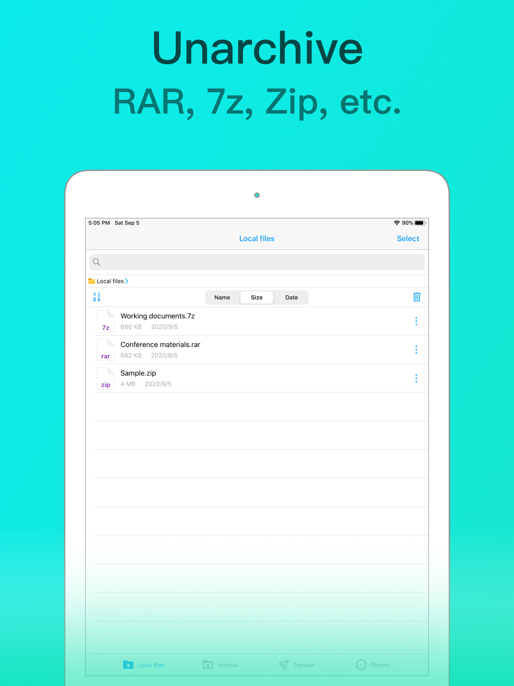 Compatible with the decompression of all compressed package formats on the market, including but not limited to: RAR, ZIP, 7z, gz, sit, tbz, tar, xar, lha, lzh, hqx, bin, macbin, as, bz2, bzip2, bz, xz, iso, cdi, nrg, mdf, z, taz, tar-z, lzma, xip, ace, arj, arc, pak, spk, zoo, lbr, lqr, lzr, pma, cab, rpm, deb, alz, dd, cpt, pit, now, sea, exe, msi, cpio, cpgz, pax, warc, ha, adf, adz, dms, f, lzx, dcs, pkd, xms, zom, pp, nsa, sar, jar, nds, pkg, a, swf, pdf, alz, a01, b01, sfx