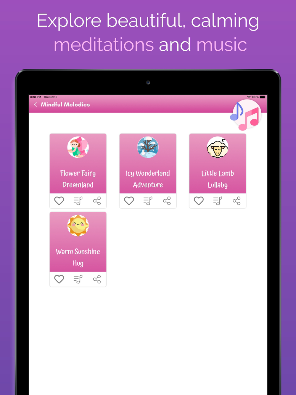 Along with mindfulness-based guided meditations, the app also enables you to remain up to date on Bright and Early Learning Center events and receive notifications when there is news about wellbeing.