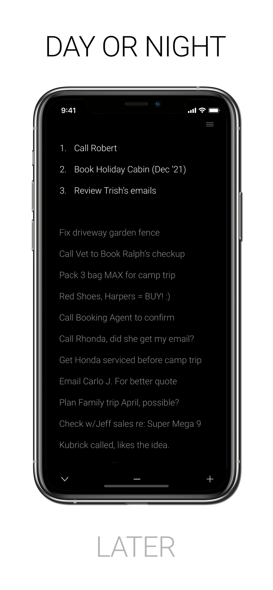 3 things for Life To Do list, makes focus the feature when building your To Do list. Plan your day the right way by keeping track of your tasks in a clear and simple interface. Using only a top 3 focus todo list and a "for later" list, you have everything you need on one screen, in one place, in one list - spend minimal time managing an app, leaving more time for getting things done. This also helps to increase focus and mindfulness of the things that need to get done, now, next and later.