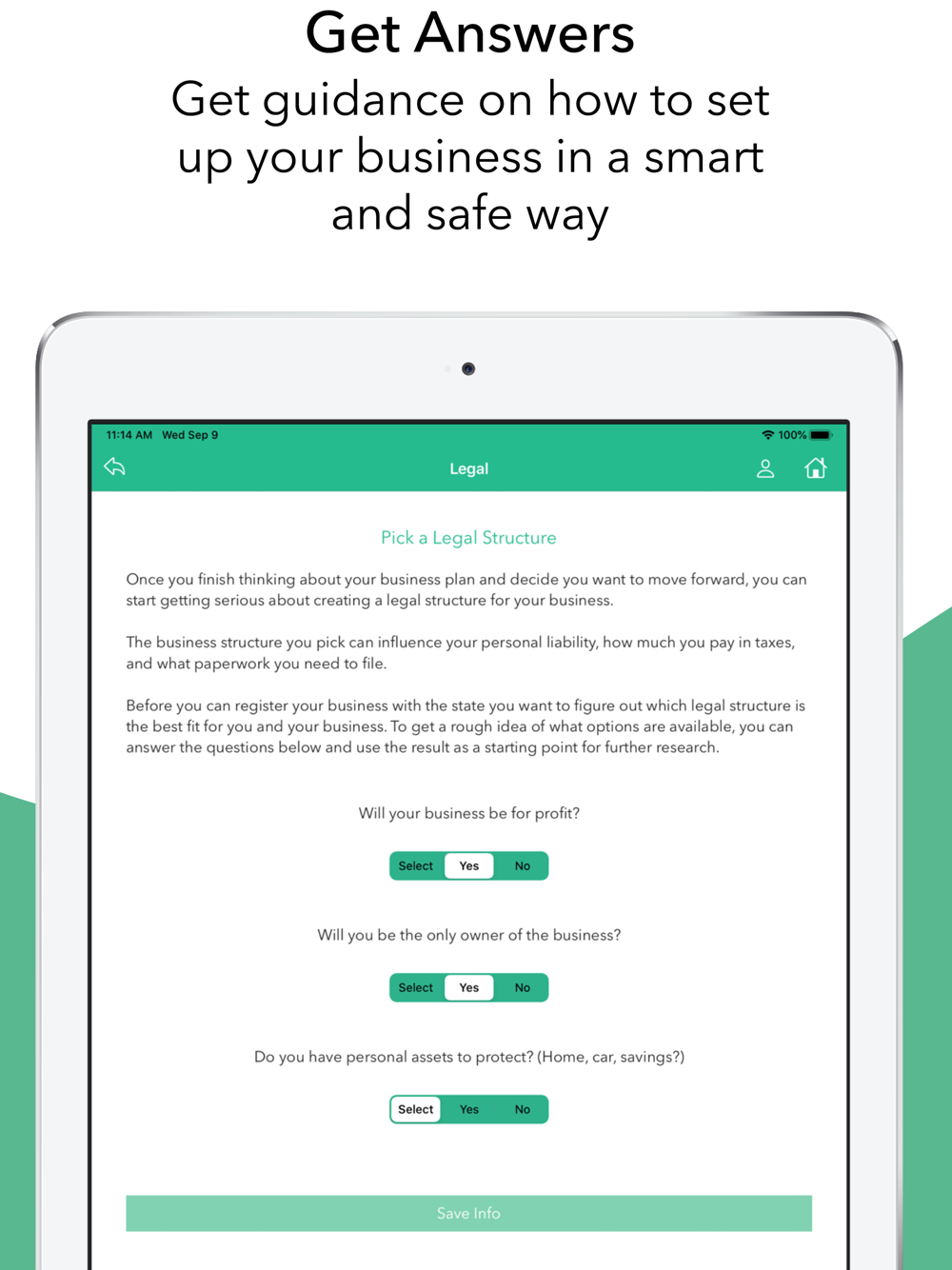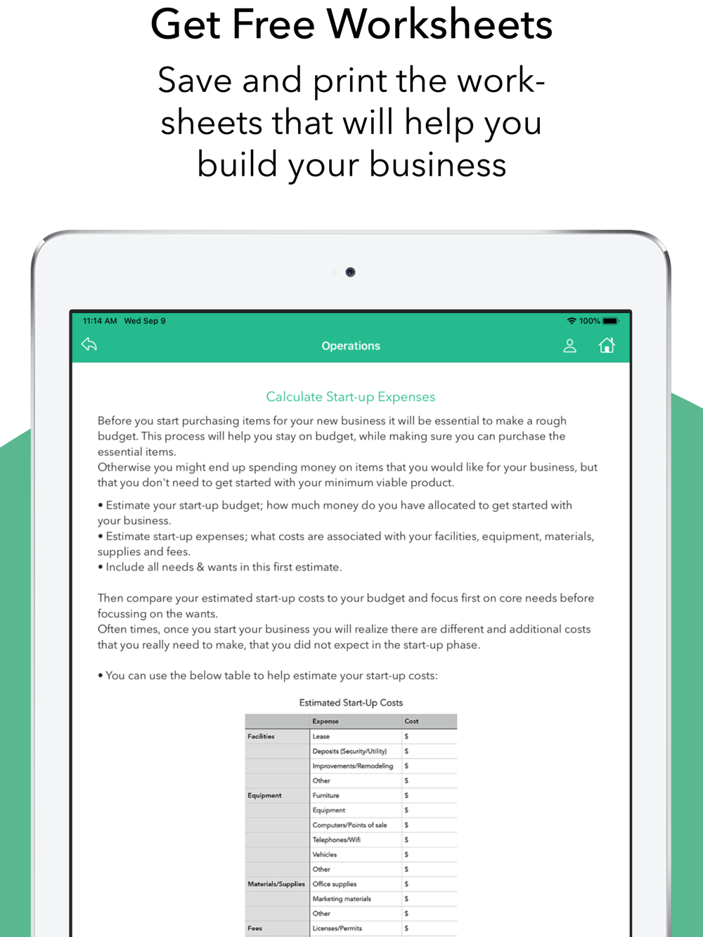 That is why we built "Start a Business"! This app helps you with developing a business plan, legal decisions, financial aspects, creating a website, marketing & sales, operations, human resources, and so much more!