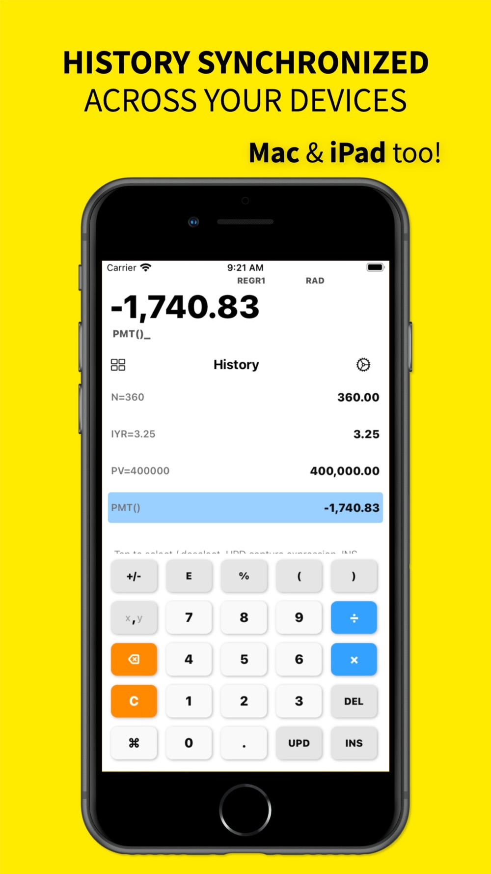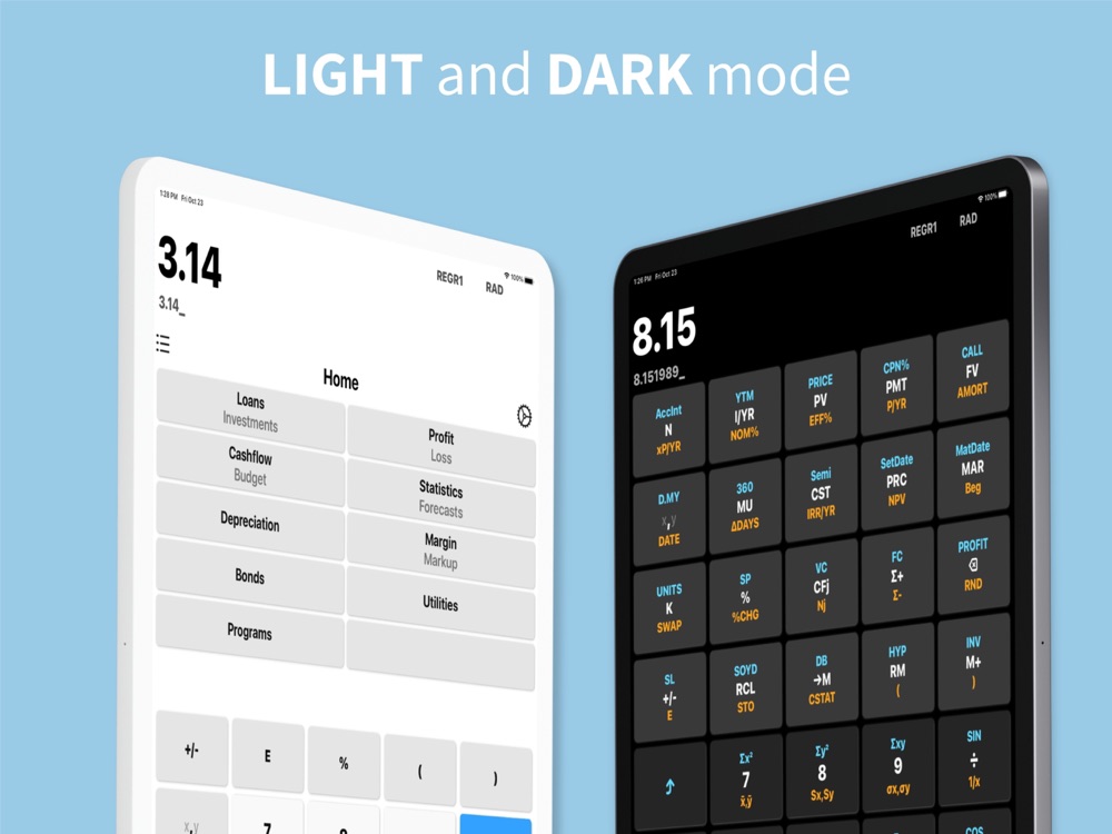Support for light and dark on iPhone and iPad. Landscape support. Dynamic text size support. iCloud sync history, current calculation, programs, and variables across all devices. Multi-tasking on the iPad in portrait and landscape modes. Sync across iPhone, iPad, and soon MacOS.